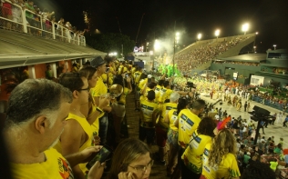 O promoter David Brazil e a rainha de bateria da Estácio, Elaine Azevedo, são os "musos" do espaço. Neste sábado, os convidados assistiram passar pela Avenida as escolas Alegria da Zona Sul, Acadêmicos de Santa Cruz, Unidos do Viradouro, Acadêmicos da Rocinha, Acadêmicos do Cubango, Inocentes de Belford Roxo e Unidos de Padre Miguel.