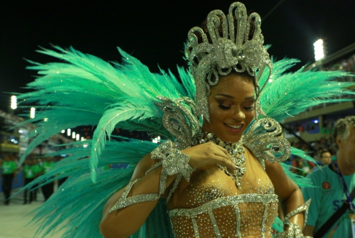 Rio - Juliana Alves reinou lindamente à frente da bateria da Unidos da Tijuca, primeira escola a passar pela Marquês de Sapucaí, nesta segunda-feira. A atriz sambou tanto que acabou sendo traída pela fantasia e mostrou parte dos seios no desfile. A atriz está de volta à Avenida apenas quatro meses após dar à luz sua primeira filha, Yolanda.