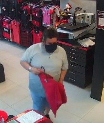 As imagens do circuito interno de segurança mostram a ação do homem, que se passou por cliente. Ele pediu uma camisa ao vendedor, que foi até o estoque buscá-la.
