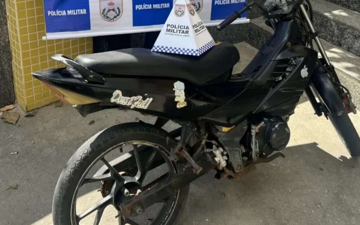 Segundo a corporação, a guarnição trafegava pela Rua Doutor Batista por volta das 9h40 quando avistou um indivíduo sem capacete conduzindo uma motocicleta preta sem placa de identificação. A equipe realizou a abordagem padrão e constatou que o condutor, identificado como S.L.B., não portava documento de identidade e não possuía carteira de habilitação.