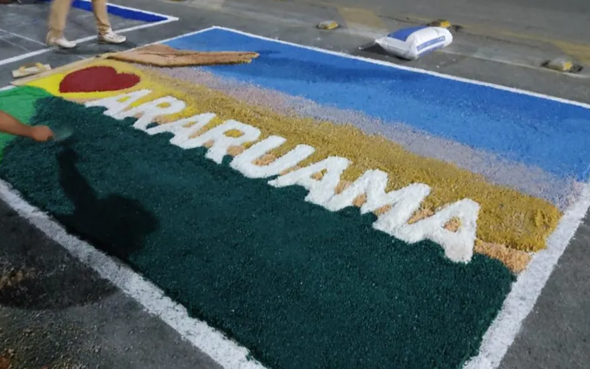 Os tapetes serão confeccionados na Rua Nilo Peçanha, altura da Igreja São Sebastião, até chegar na Avenida Getúlio Vargas, na altura da praça Menino João Hélio, no Centro.