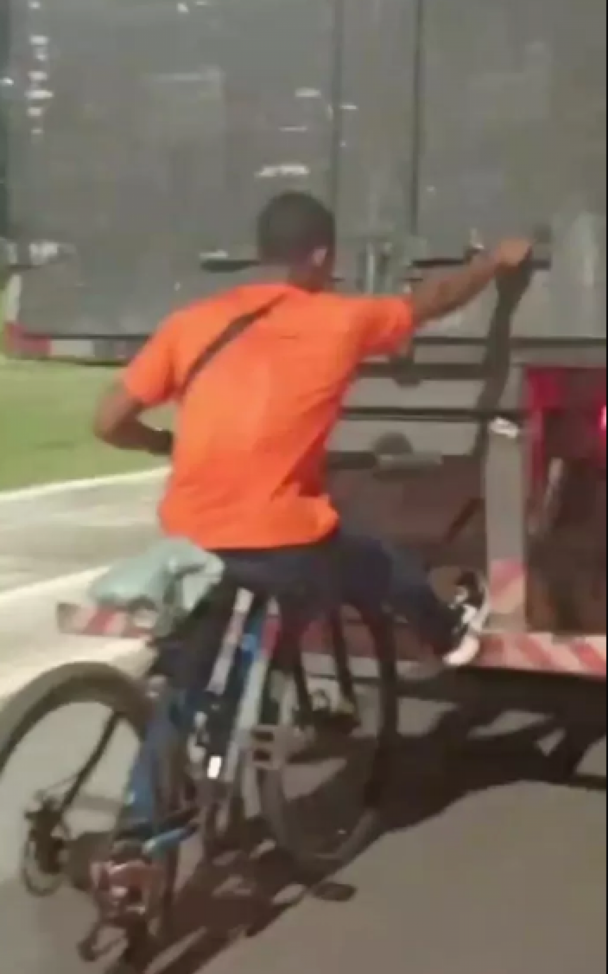 Ciclista se agarra a caminhão em movimento@araruamaempauta