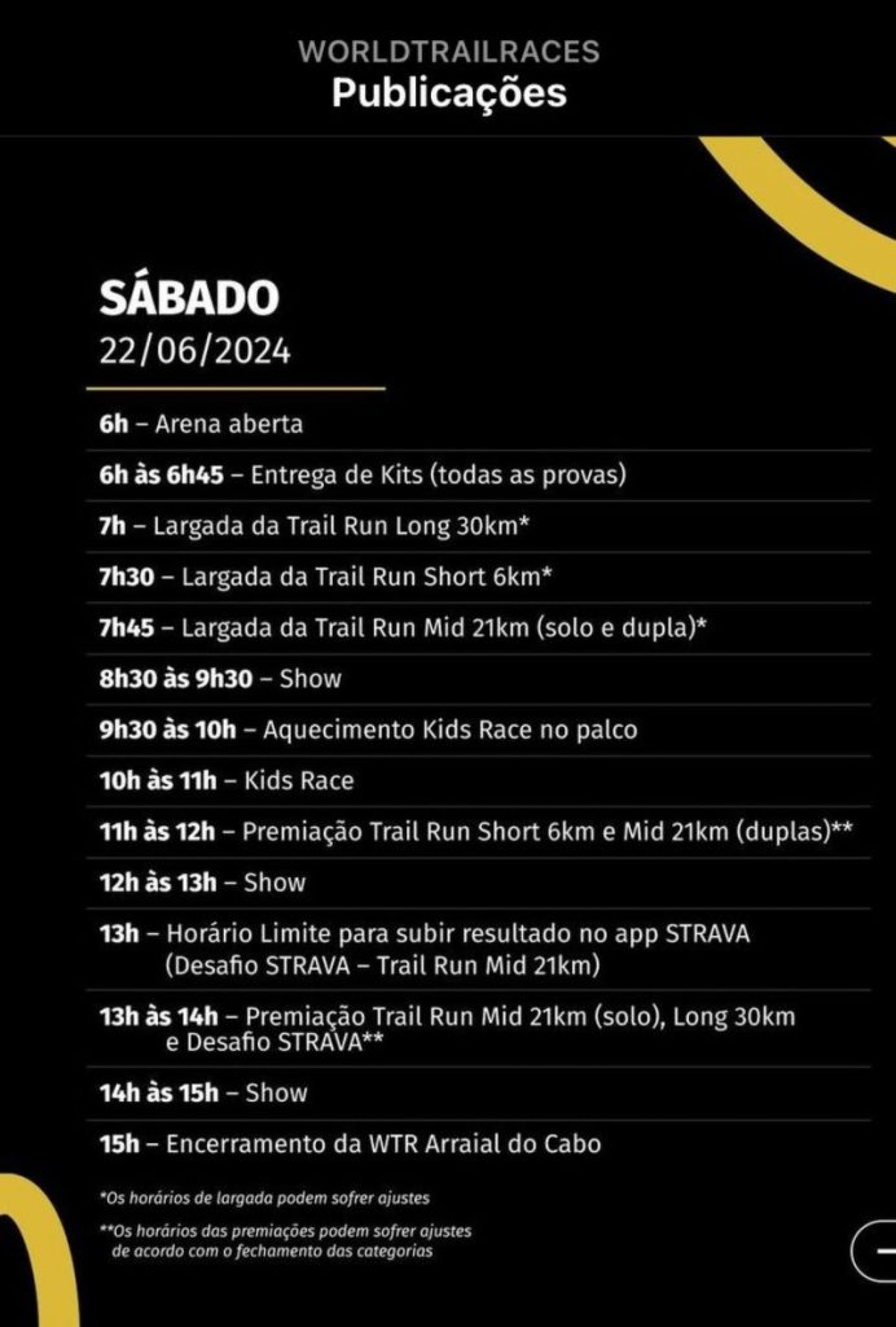 A WTR Arraial do Cabo, que inaugurou a liga há dez anos, é a única do calendário que oferece a opção de disputa em duplas. Esta será a nona vez que o Caribe brasileiro recebe o evento, que conta com percursos Short 6km, Mid 21km (individual e duplas) e Long 30km.