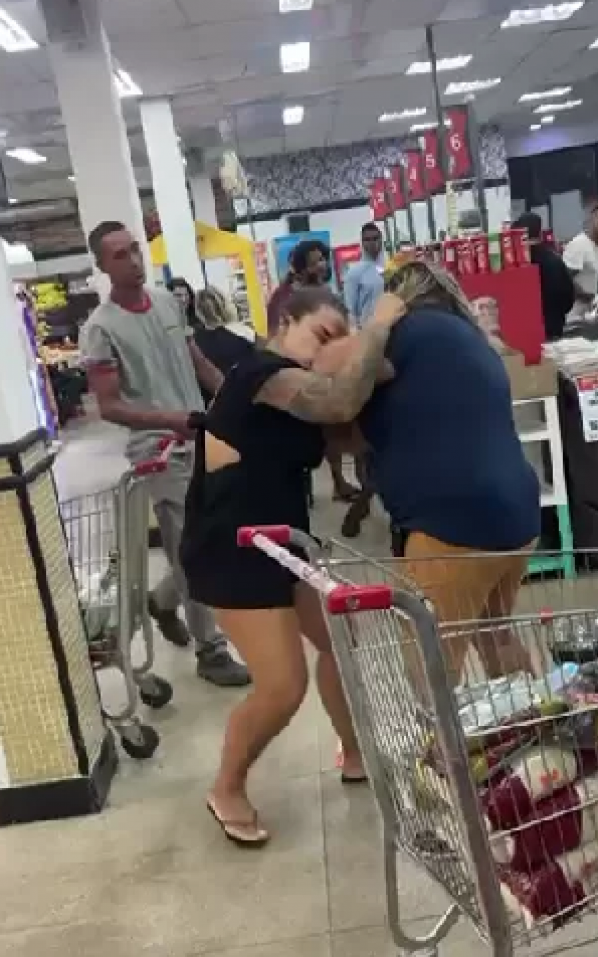 O supermercado não se pronunciou oficialmente sobre o episódio, mas testemunhas confirmaram que funcionários precisaram intervir para conter a briga. O caso não resultou em registro policial até o momento.