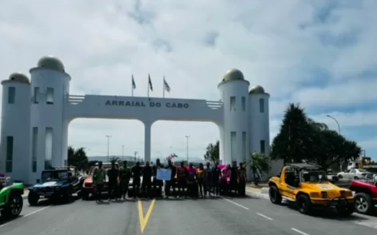 Arraial do Cabo - Profissionais que realizam passeios de buggy em Arraial do Cabo organizaram um protesto pacífico na manhã desta segunda-feira (8). O grupo, formado por 18 bugueiros, se reuniu em frente ao pórtico de entrada da cidade para reivindicar a liberação do acesso à Lagoa Vermelha, um dos pontos mais procurados pelos turistas que fazem o roteiro.