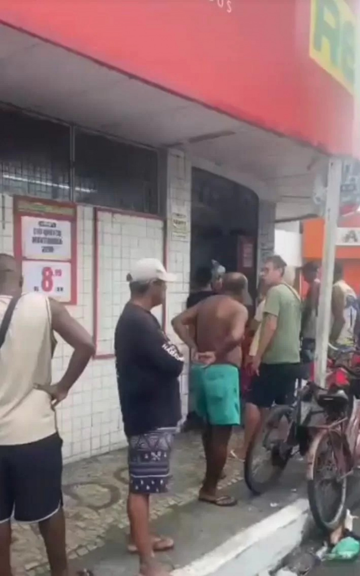 Um vídeo que circula nas redes sociais mostra um supermercado completamente lotado, com filas longas já do lado de fora, formadas por pessoas aguardando para entrar no local em frente a rodoviária.