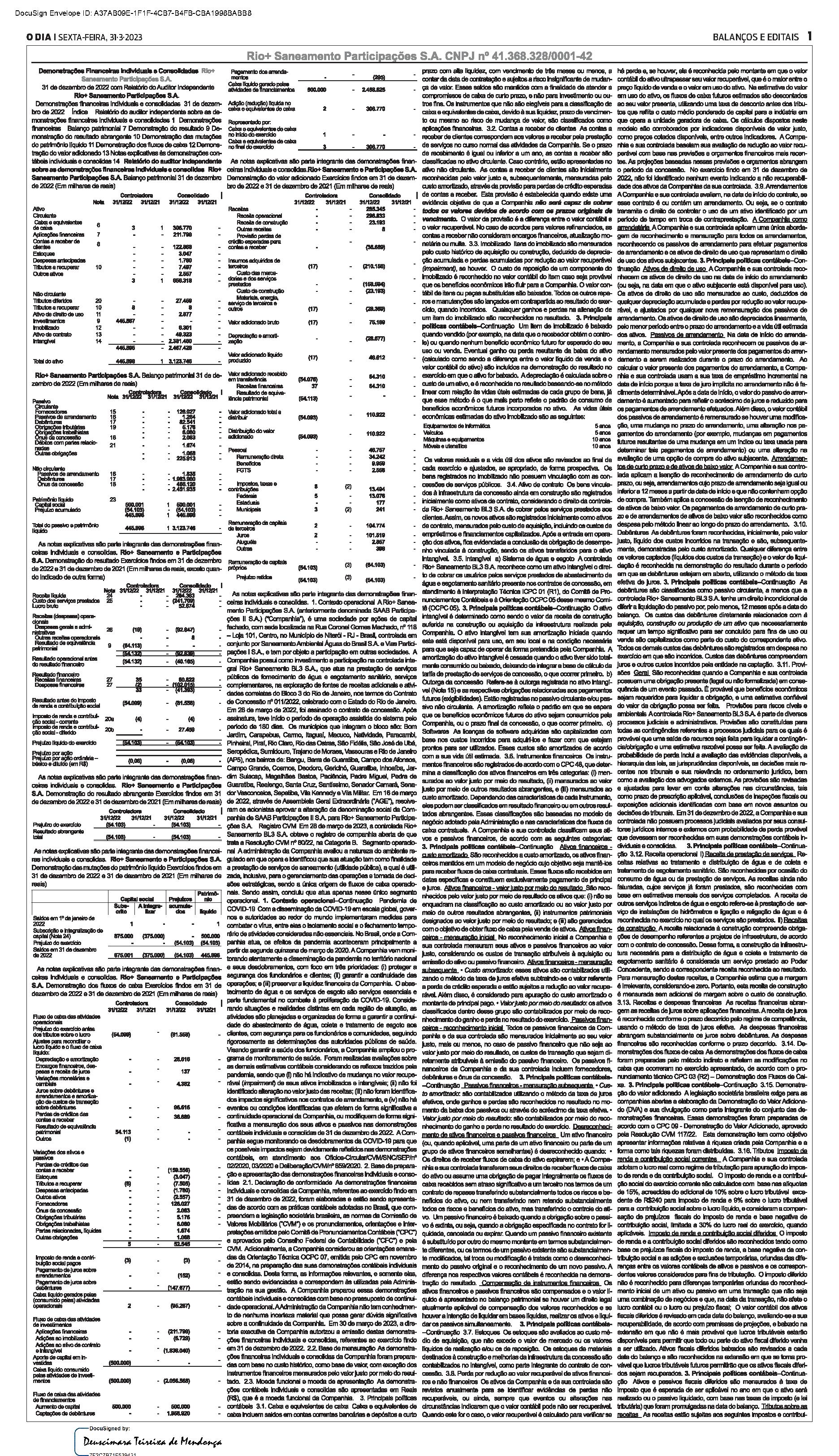 Balanços e Editais PUBLICAÇÃO CERTIFICADA 31/03/2023 PUBLICAÇÃO CERTIFICADA 31/03/2023 Publicado há 10 minutos