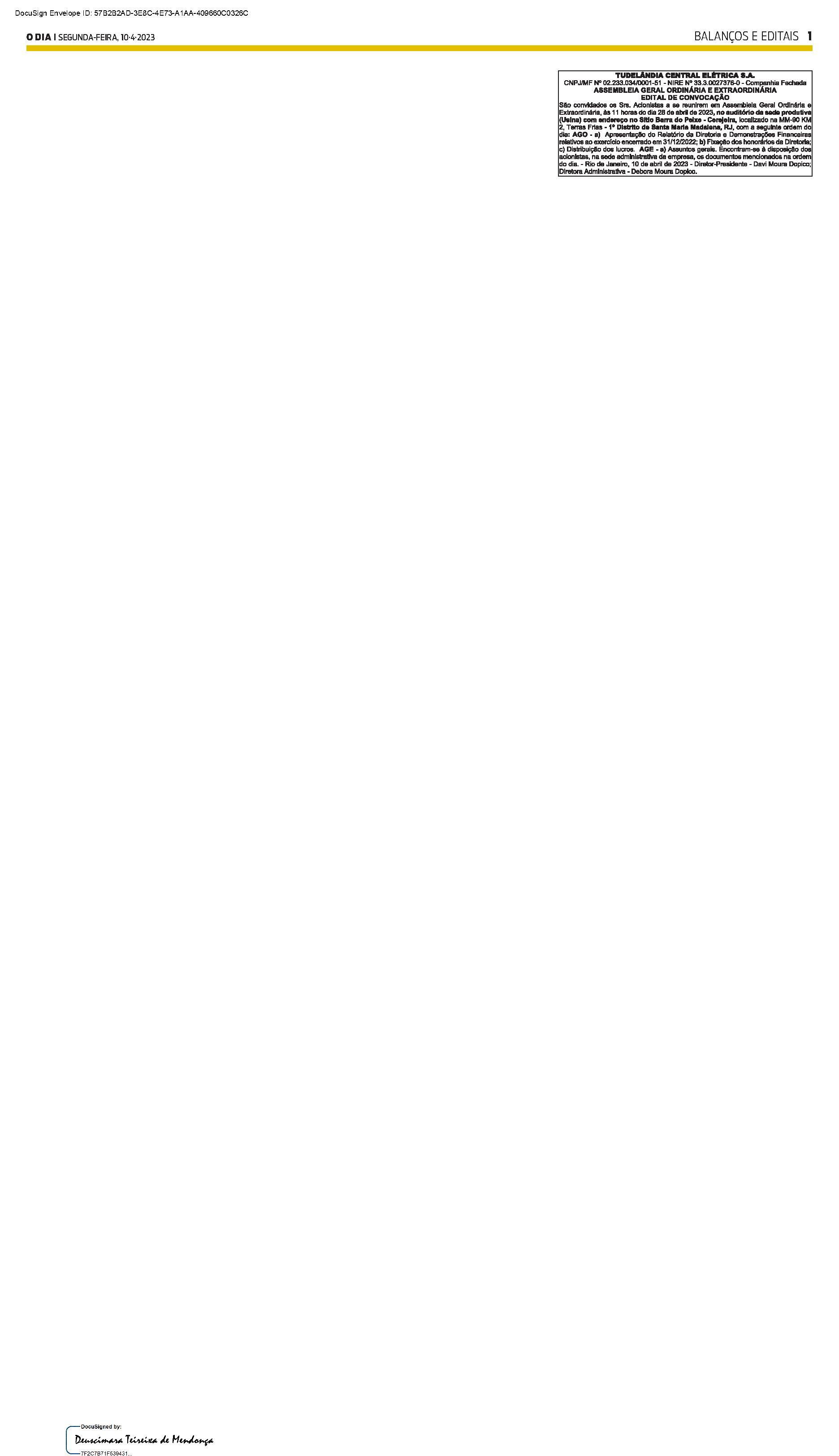 Balanços e Editais PUBLICAÇÃO CERTIFICADA 10/04/2023 PUBLICAÇÃO CERTIFICADA 10/04/2023 Publicado 10/04/2023 00:00 | Atualizado há 2 segundos