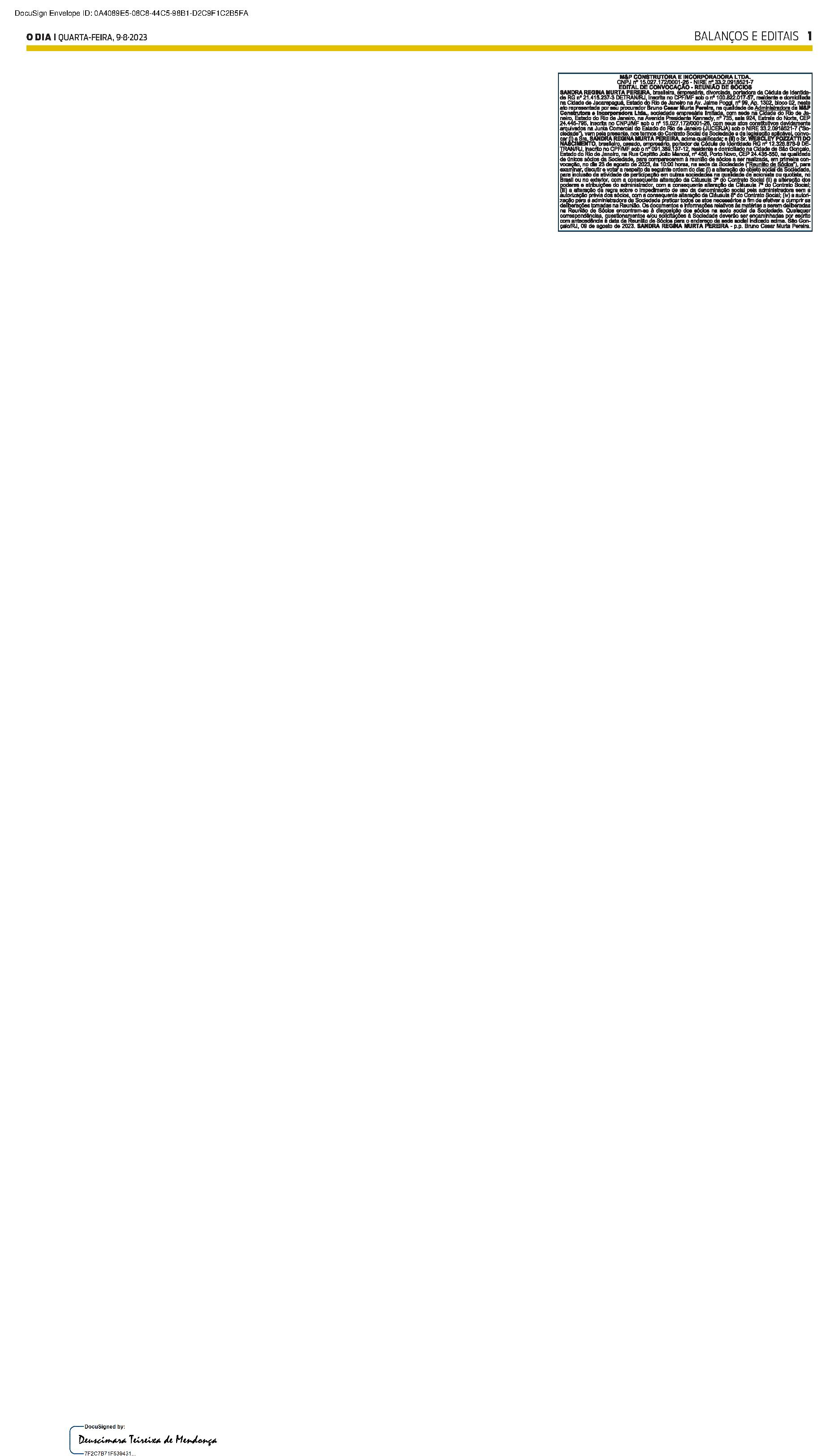 Balanços e Editais PUBLICAÇÃO CERTIFICADA 09/08/2023 PUBLICAÇÃO CERTIFICADA 09/08/2023 Publicado há 14 minutos