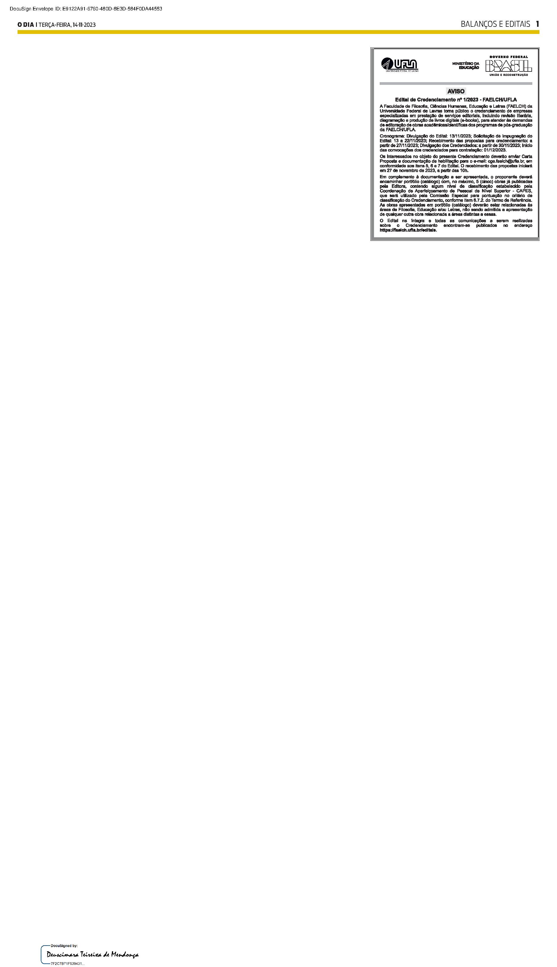 Balanços e Editais PUBLICAÇÃO CERTIFICADA 07/11/2023 PUBLICAÇÃO CERTIFICADA 07/11/2023 Publicado há 1 semana