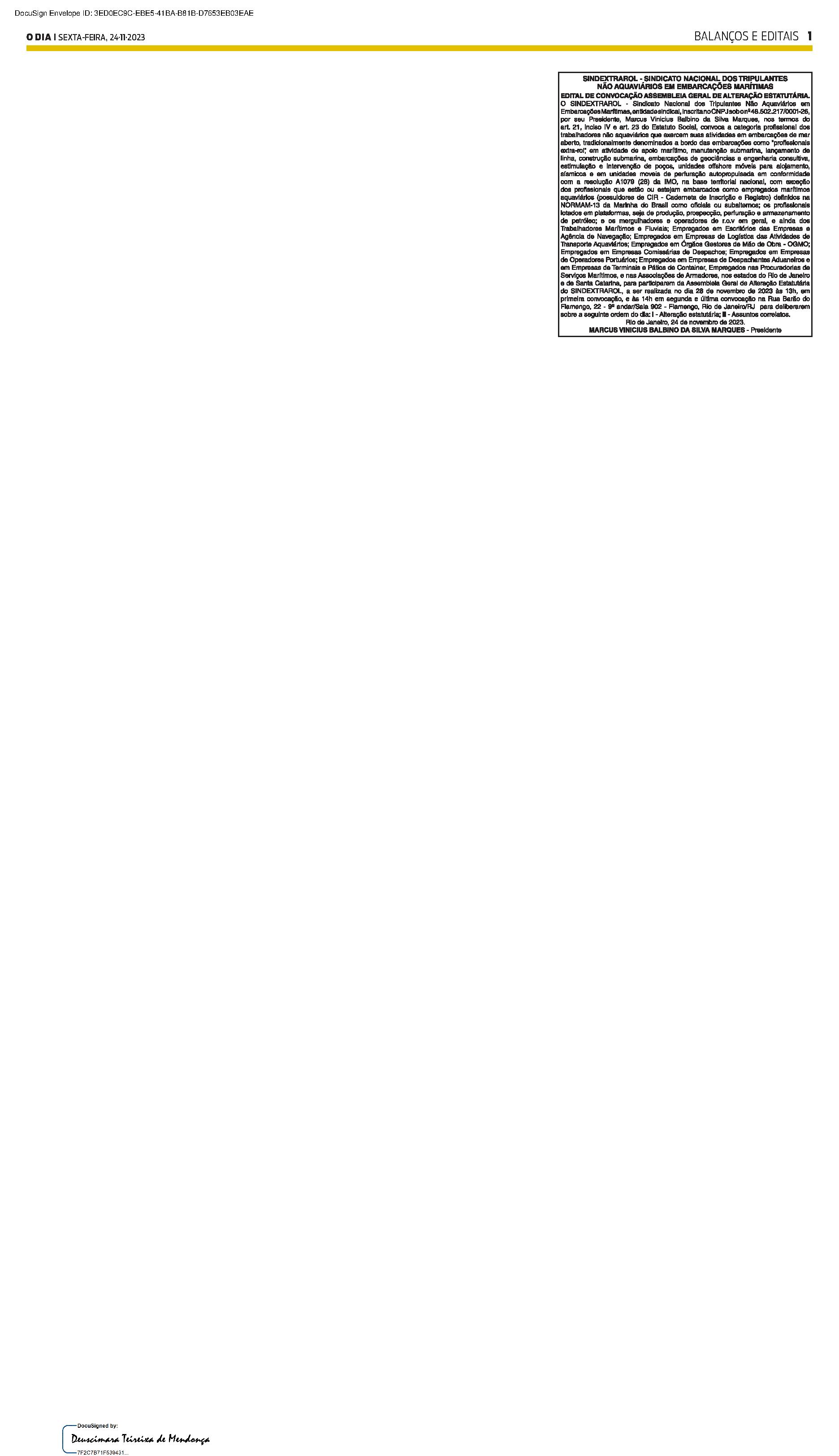 Balanços e Editais PUBLICAÇÃO CERTIFICADA 07/11/2023 PUBLICAÇÃO CERTIFICADA 07/11/2023 Publicado há 2 semanas