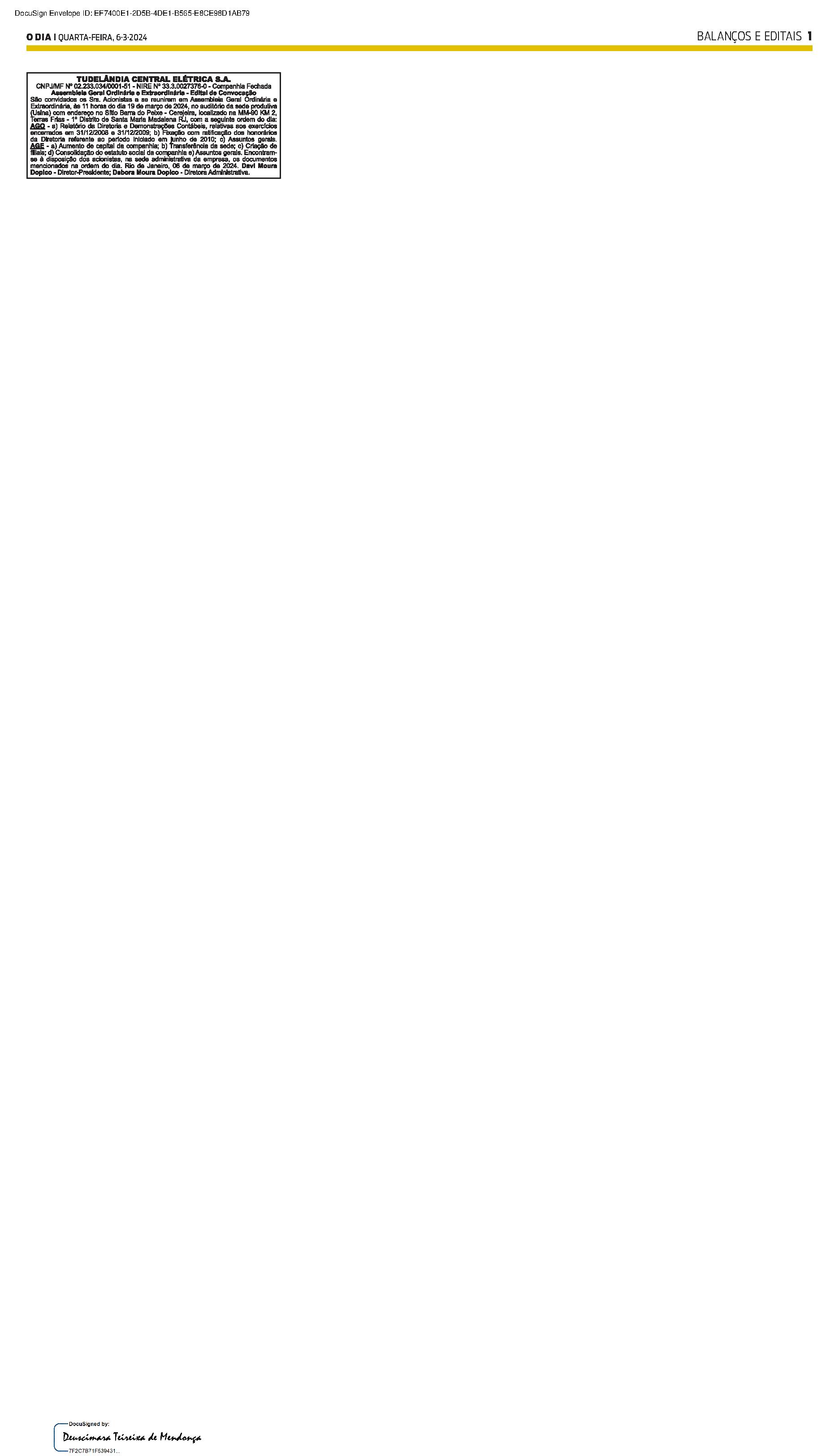 Balanços e Editais PUBLICAÇÃO CERTIFICADA 24/02/2024 PUBLICAÇÃO CERTIFICADA 24/02/2024 Publicado há 2 semanas