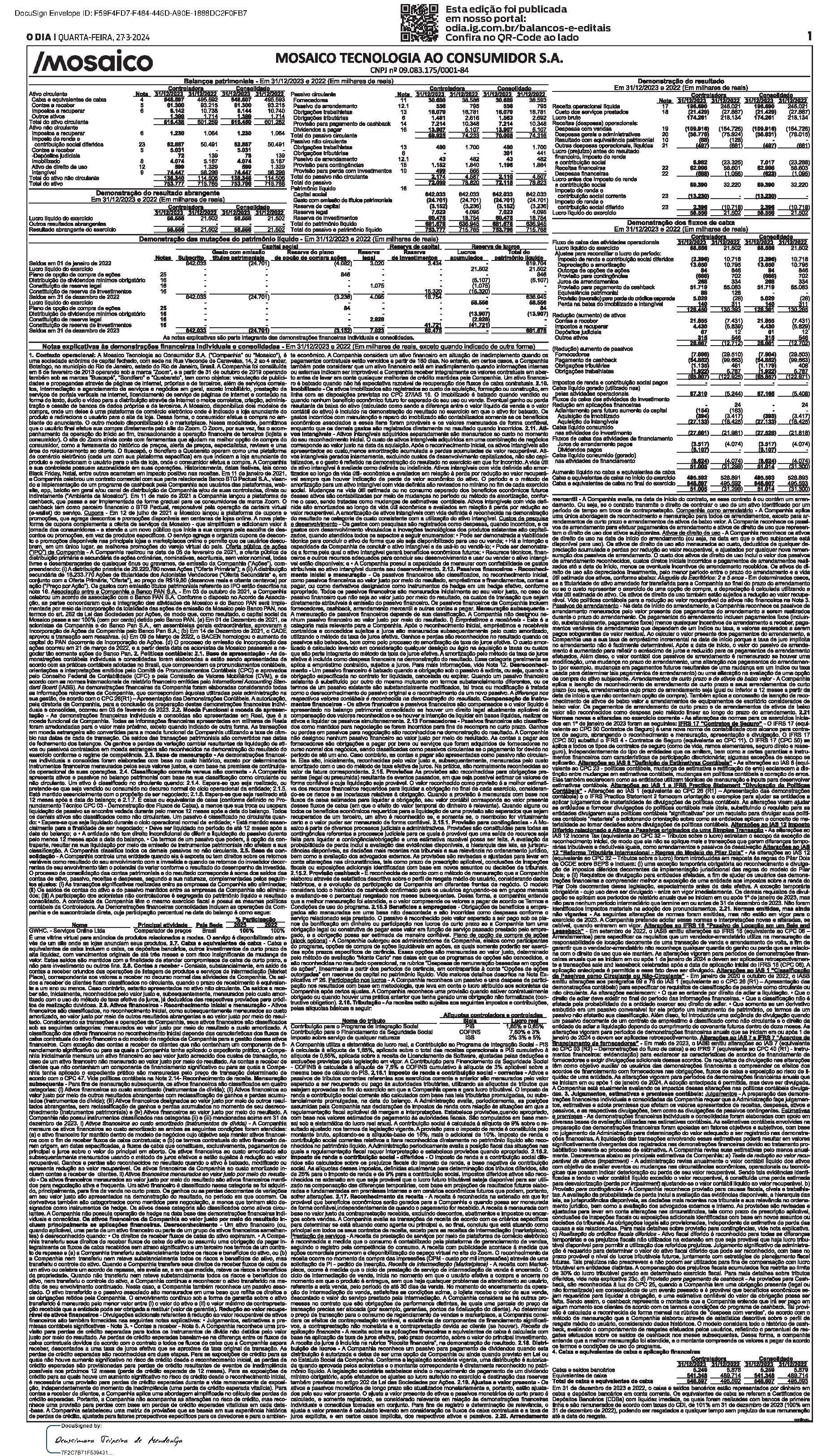 Balanços e Editais PUBLICAÇÃO CERTIFICADA 22/03/2024 PUBLICAÇÃO CERTIFICADA 22/03/2024 Publicado há 5 dias