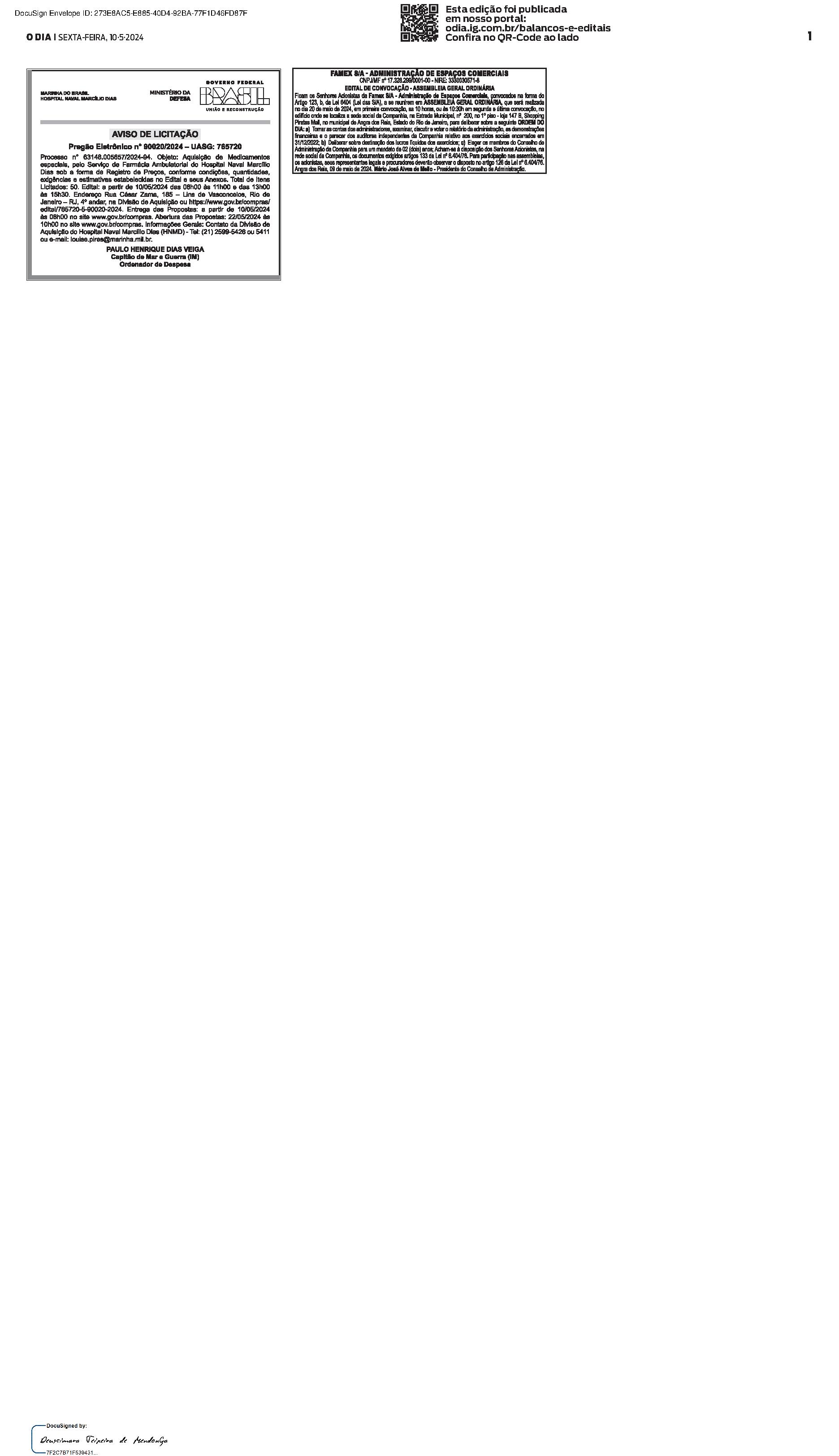 Balanços e Editais PUBLICAÇÃO CERTIFICADA 10/05/2024 PUBLICAÇÃO CERTIFICADA 10/05/2024 Publicado há 18 minutos