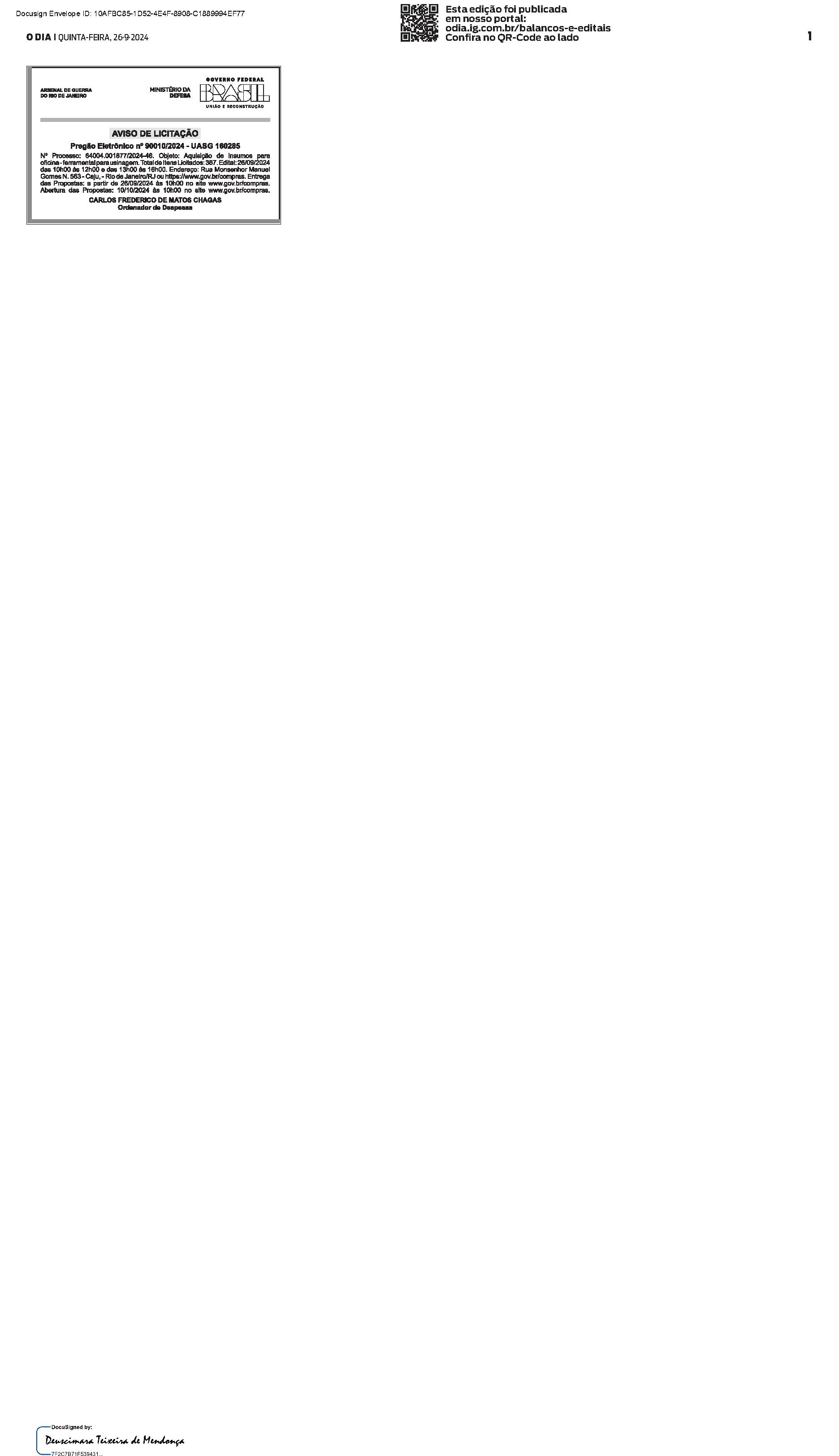 Balanços e Editais PUBLICAÇÃO CERTIFICADA 19/09/2024 PUBLICAÇÃO CERTIFICADA 19/09/2024 Publicado há 1 semana