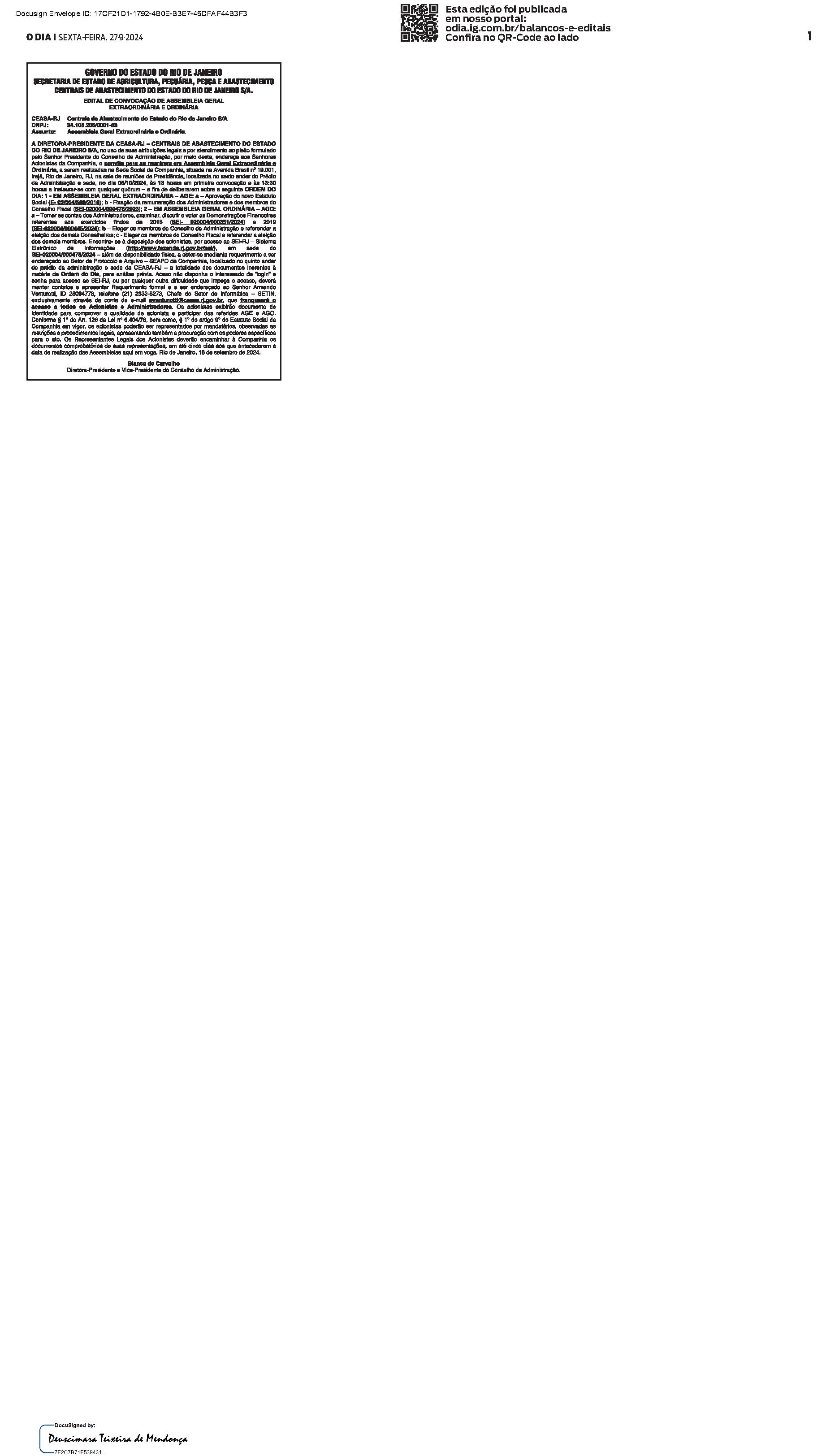 Balanços e Editais PUBLICAÇÃO CERTIFICADA 26/09/2024 PUBLICAÇÃO CERTIFICADA 26/09/2024 Publicado há 1 dia