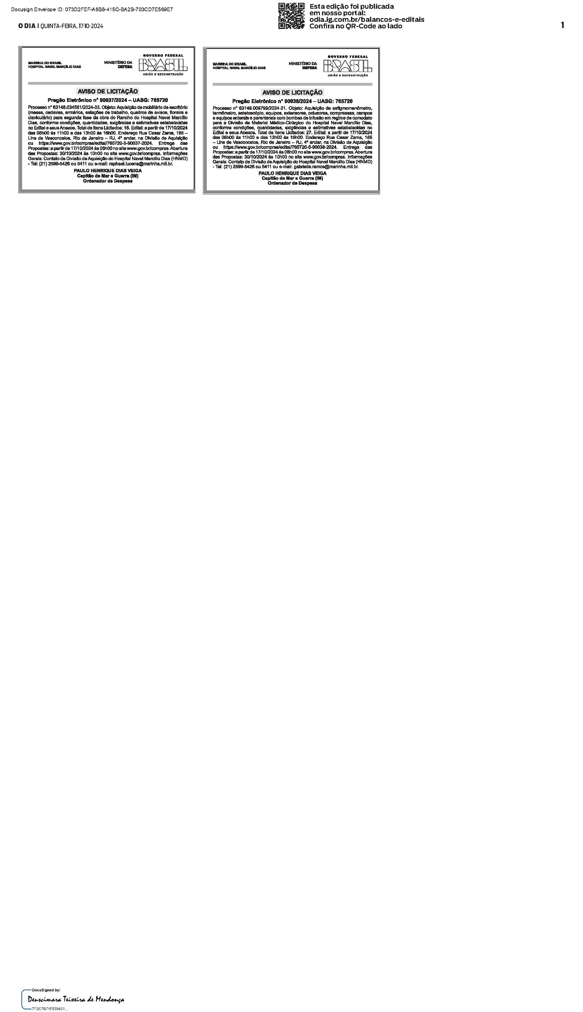 Balanços e Editais PUBLICAÇÃO CERTIFICADA 17/10/2024 PUBLICAÇÃO CERTIFICADA 17/10/2024 Publicado há 2 minutos