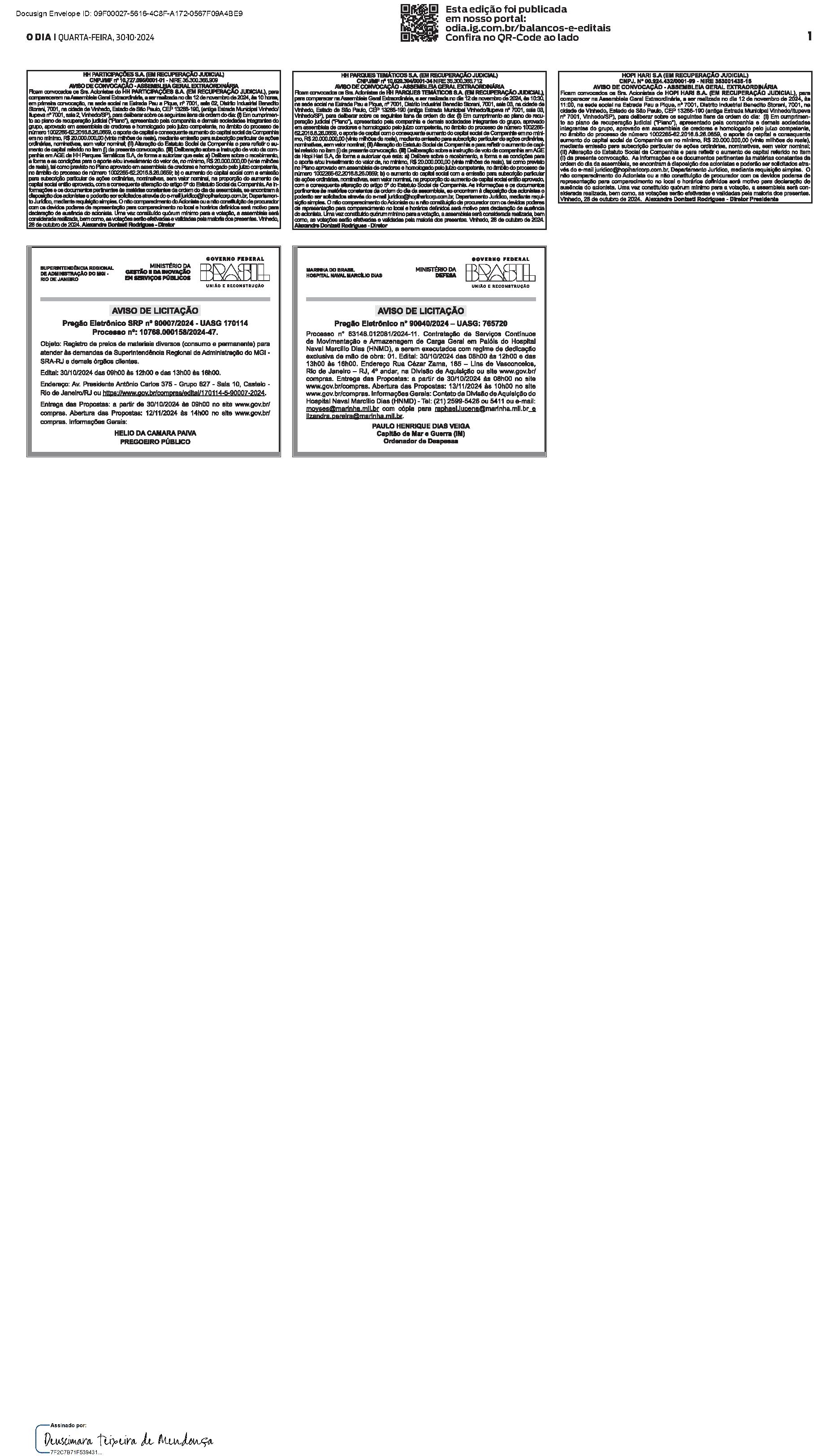 Balanços e Editais PUBLICAÇÃO CERTIFICADA 24/10/2024 PUBLICAÇÃO CERTIFICADA 24/10/2024 Publicado há 6 dias