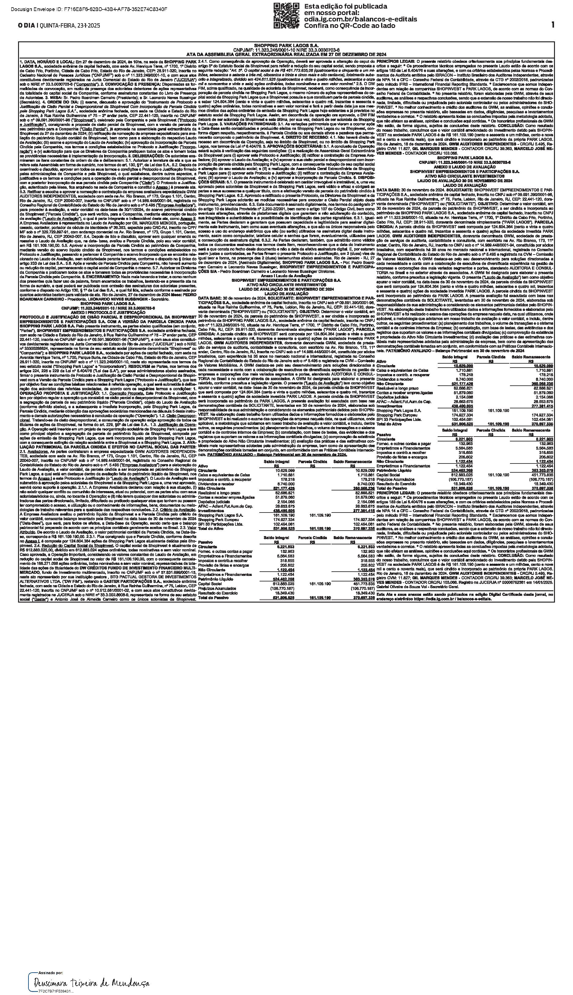 Balanços e Editais PUBLICAÇÃO CERTIFICADA 23/01/2025 PUBLICAÇÃO CERTIFICADA 23/01/2025 Publicado há 1 minuto