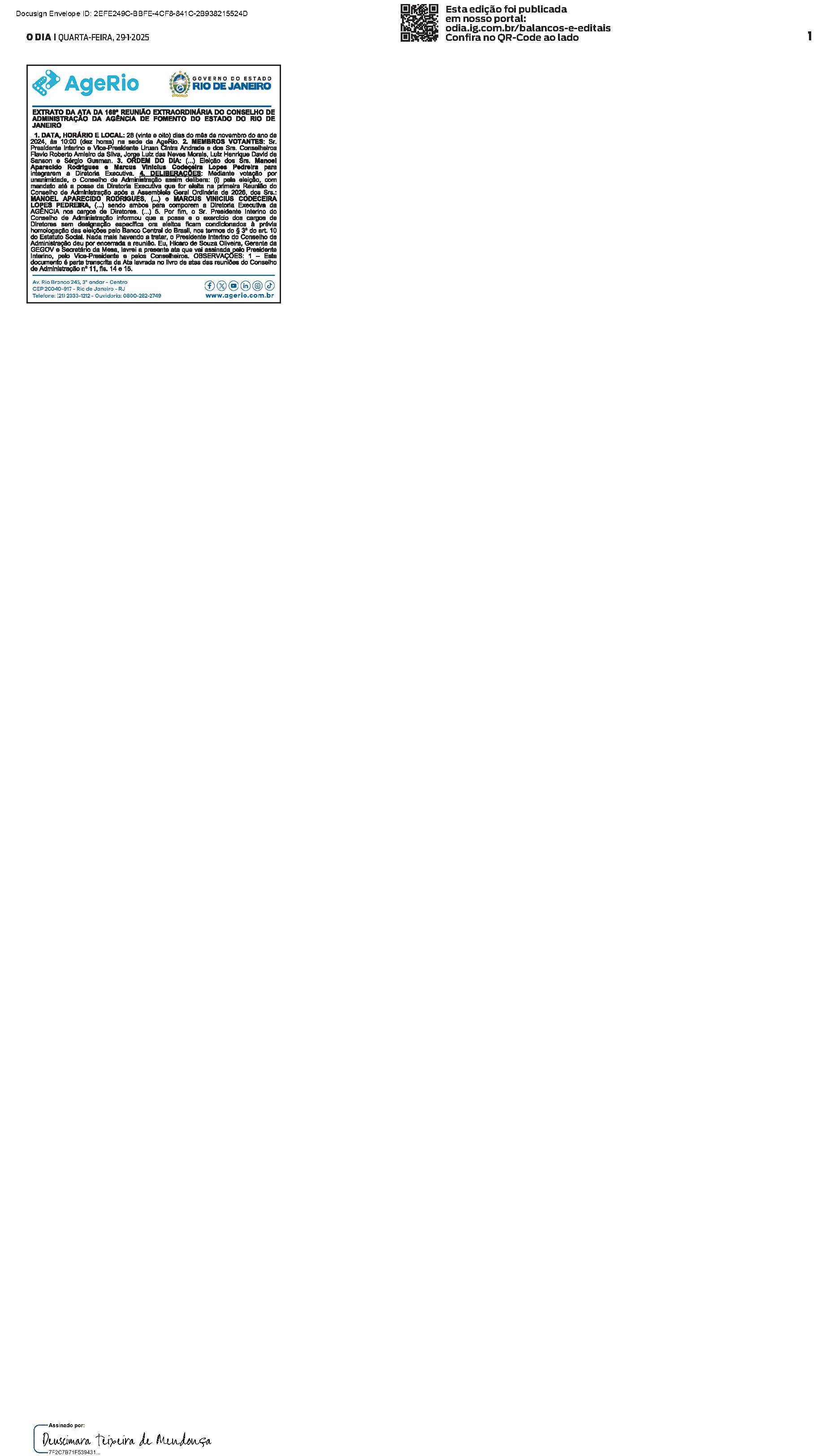 Balanços e Editais PUBLICAÇÃO CERTIFICADA 14/01/2025 PUBLICAÇÃO CERTIFICADA 14/01/2025 Publicado há 2 semanas