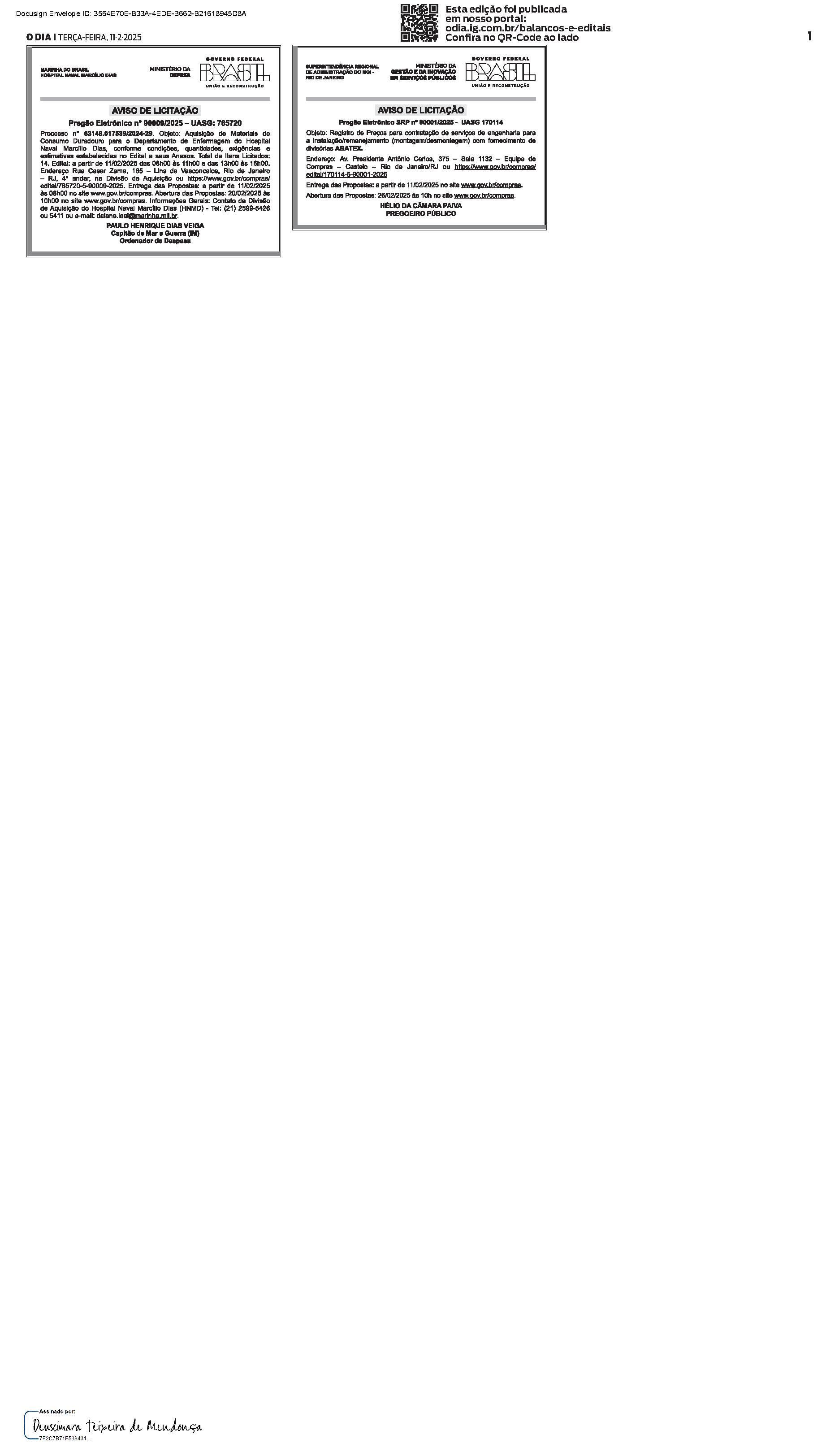 Balanços e Editais PUBLICAÇÃO CERTIFICADA 10/02/2025 PUBLICAÇÃO CERTIFICADA 10/02/2025 Publicado há 1 dia