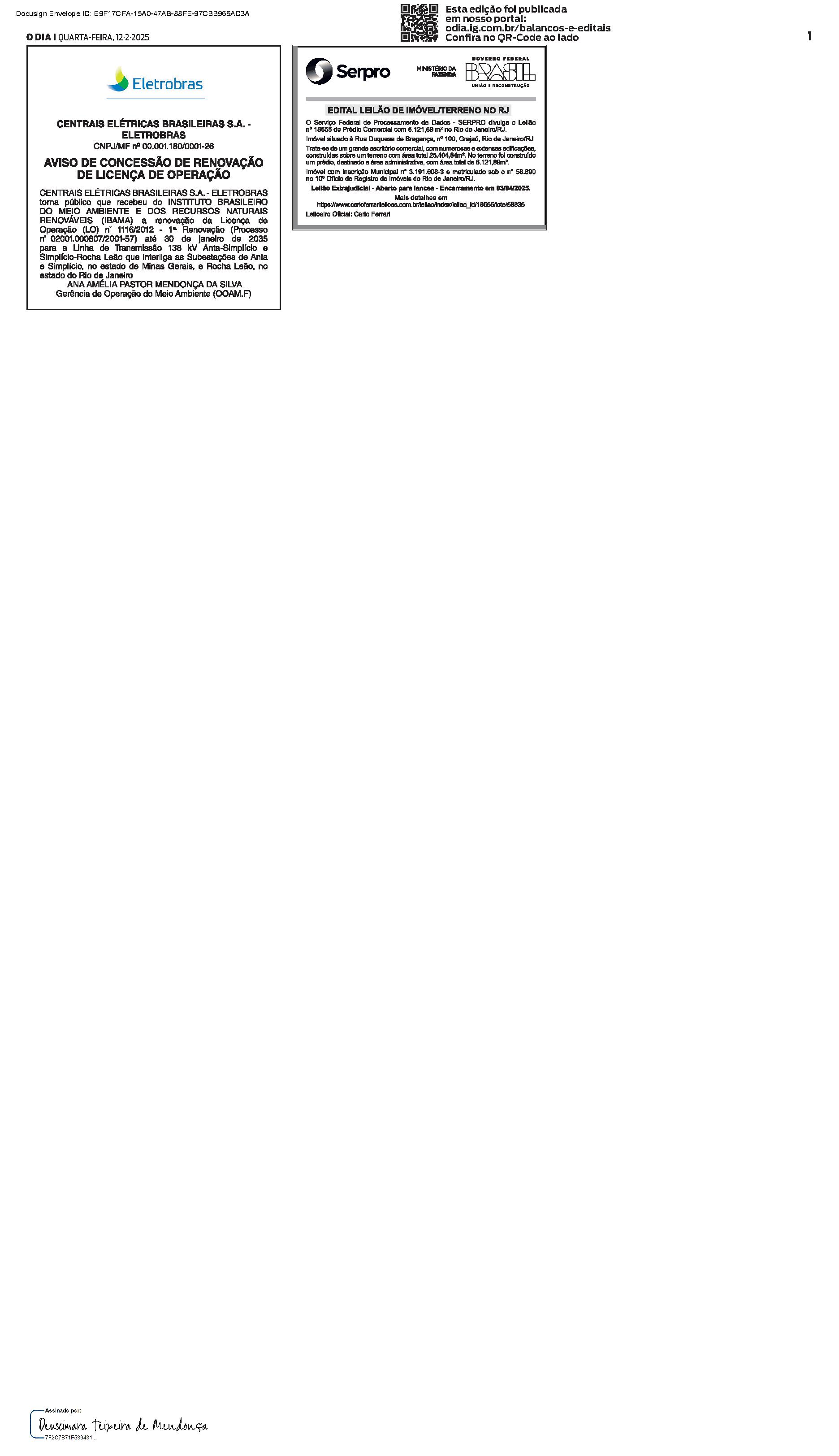 Balanços e Editais PUBLICAÇÃO CERTIFICADA 12/02/2025 PUBLICAÇÃO CERTIFICADA 12/02/2025 Publicado há 54 segundos