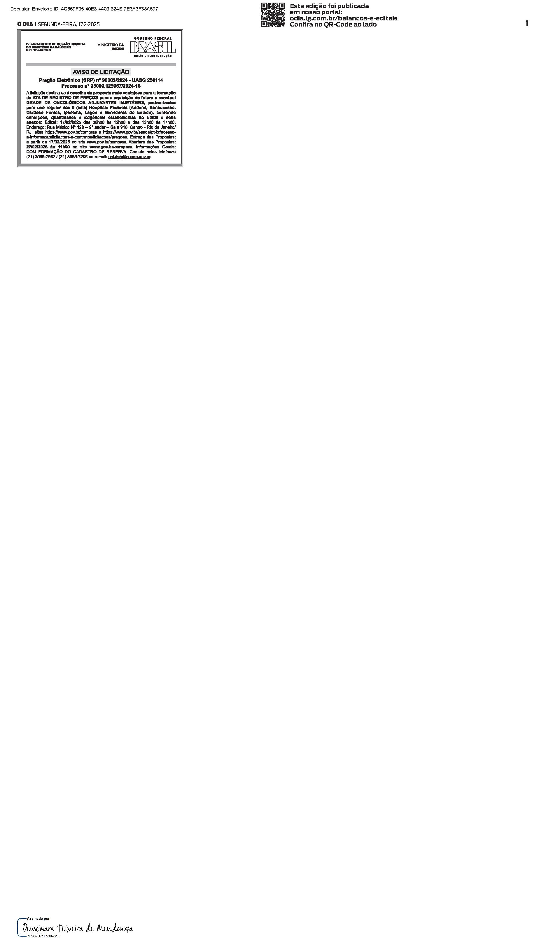 Balanços e Editais PUBLICAÇÃO CERTIFICADA 07/02/2025 PUBLICAÇÃO CERTIFICADA 07/02/2025 Publicado há 1 semana