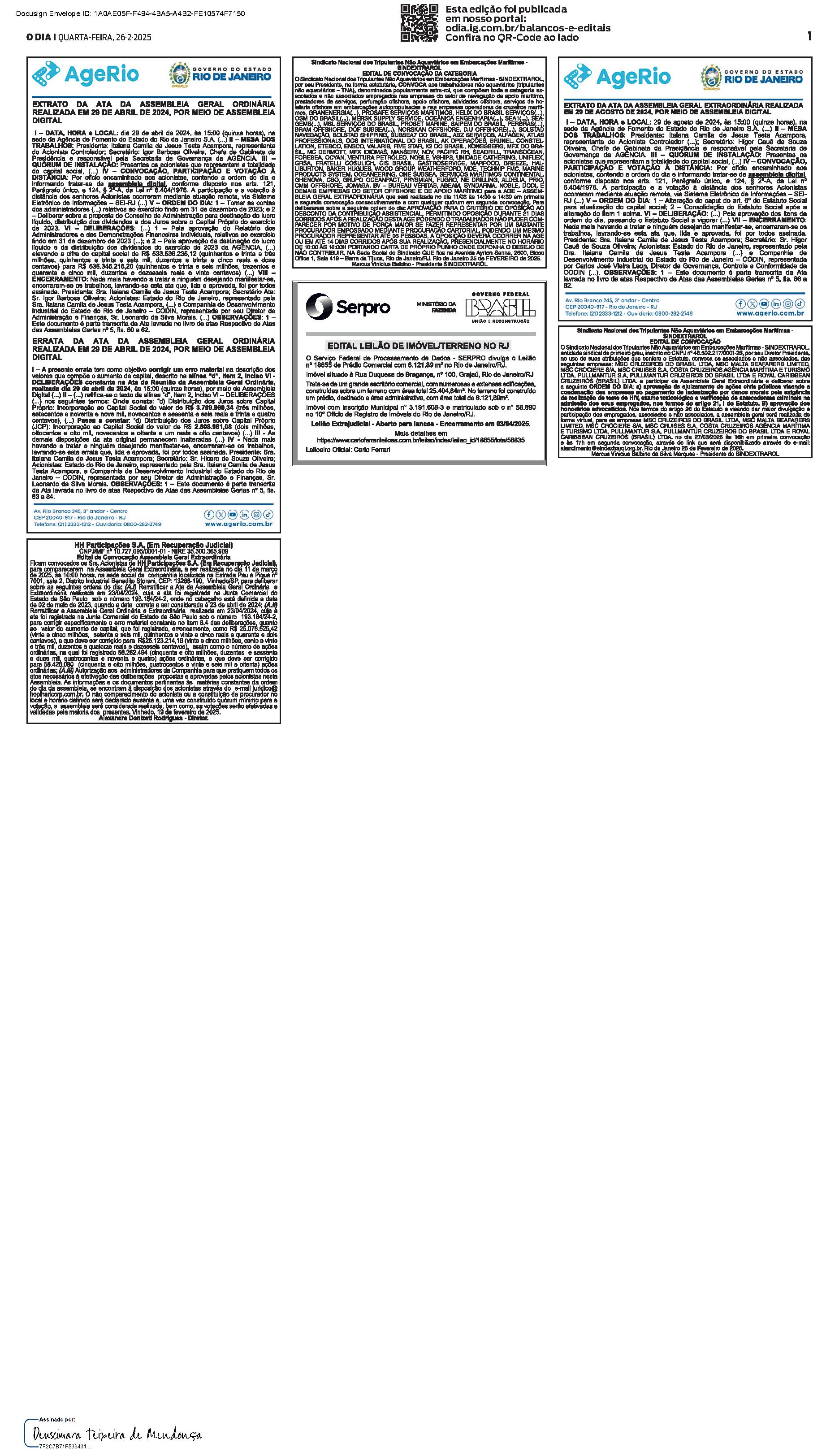 Balanços e Editais PUBLICAÇÃO CERTIFICADA 26/02/2025 PUBLICAÇÃO CERTIFICADA 26/02/2025 Publicado há 53 segundos