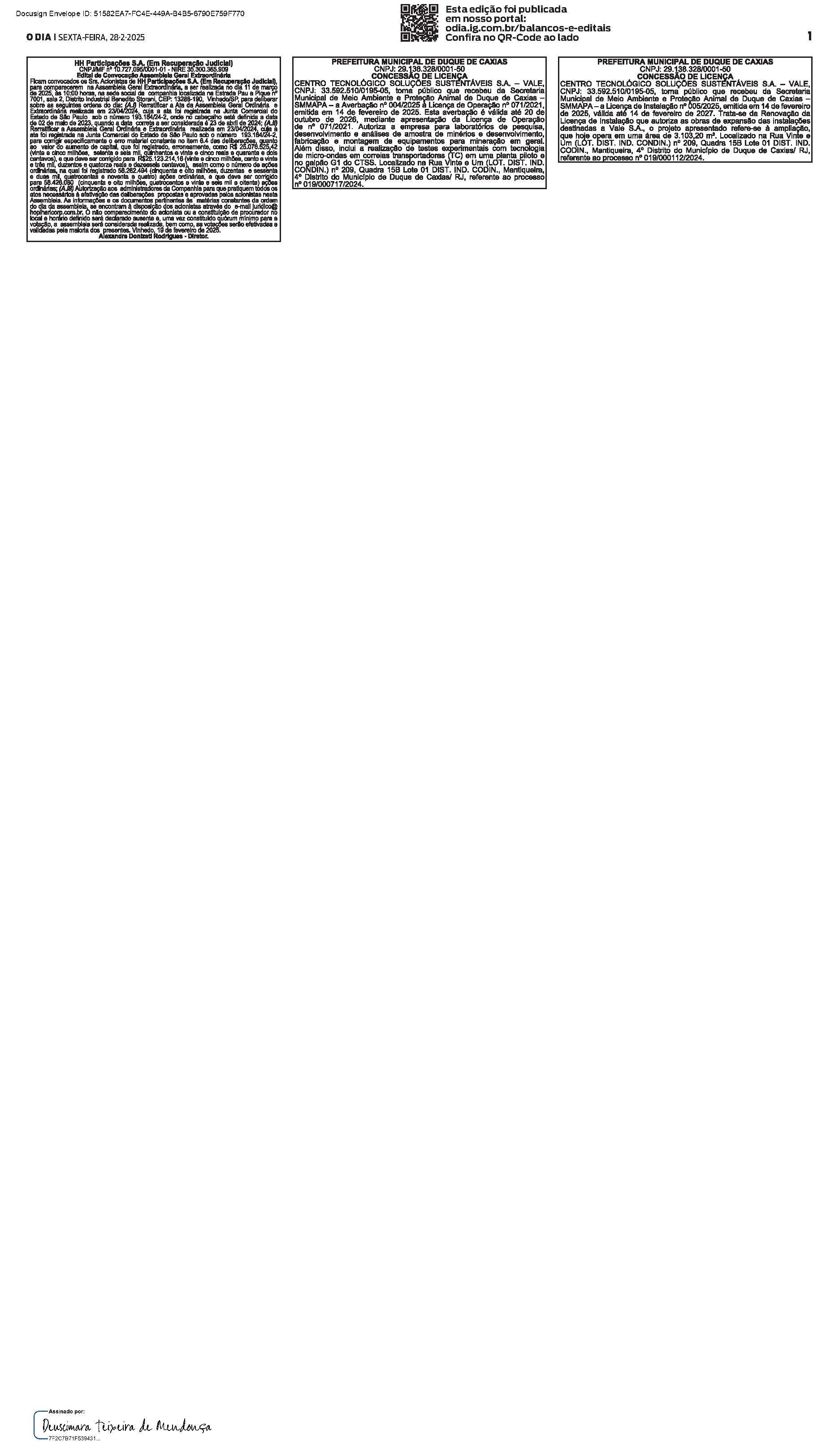 Balanços e Editais PUBLICAÇÃO CERTIFICADA 26/02/2025 PUBLICAÇÃO CERTIFICADA 26/02/2025 Publicado há 2 dias