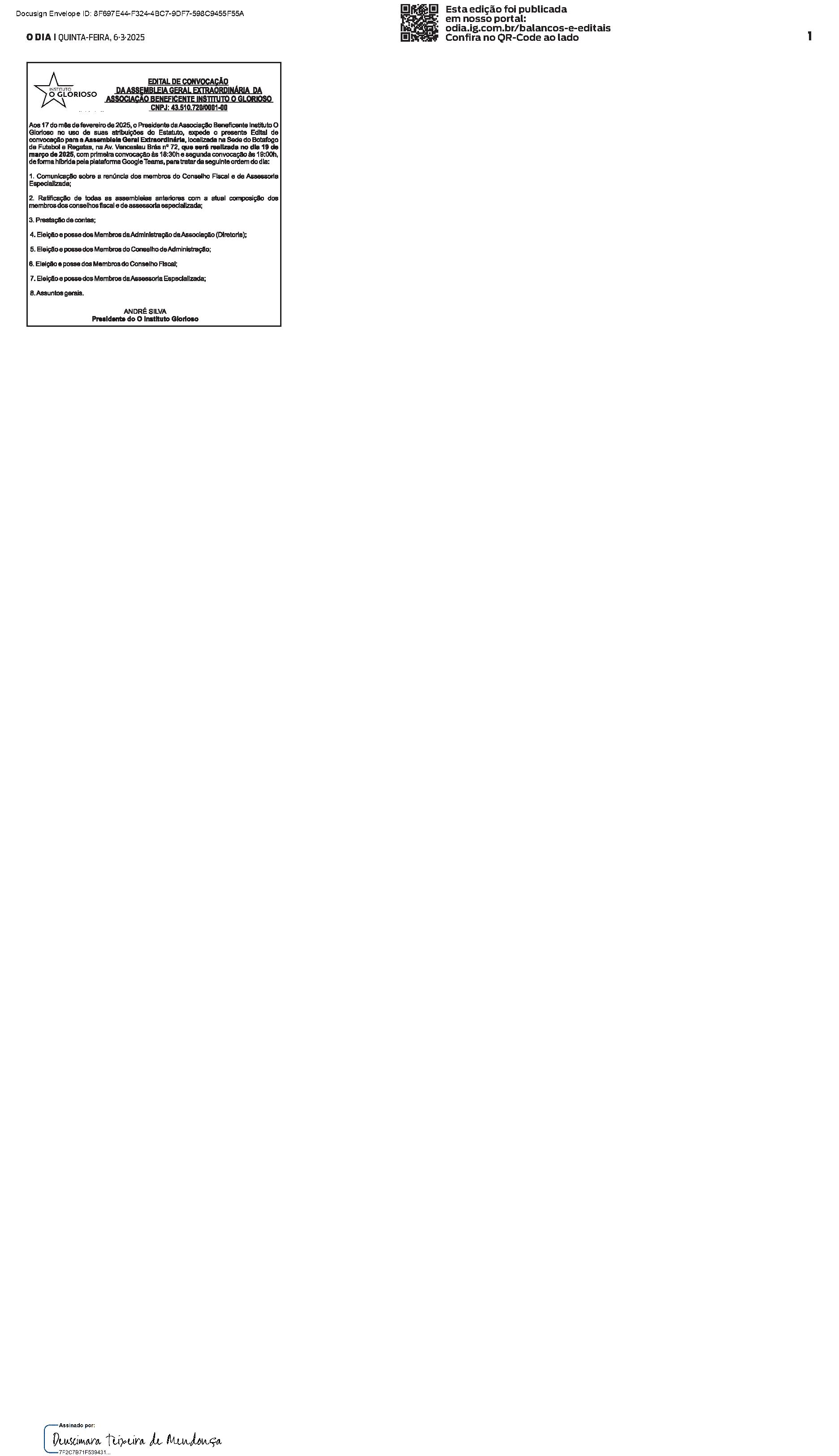 Balanços e Editais PUBLICAÇÃO CERTIFICADA 26/02/2025 PUBLICAÇÃO CERTIFICADA 26/02/2025 Publicado há 1 semana