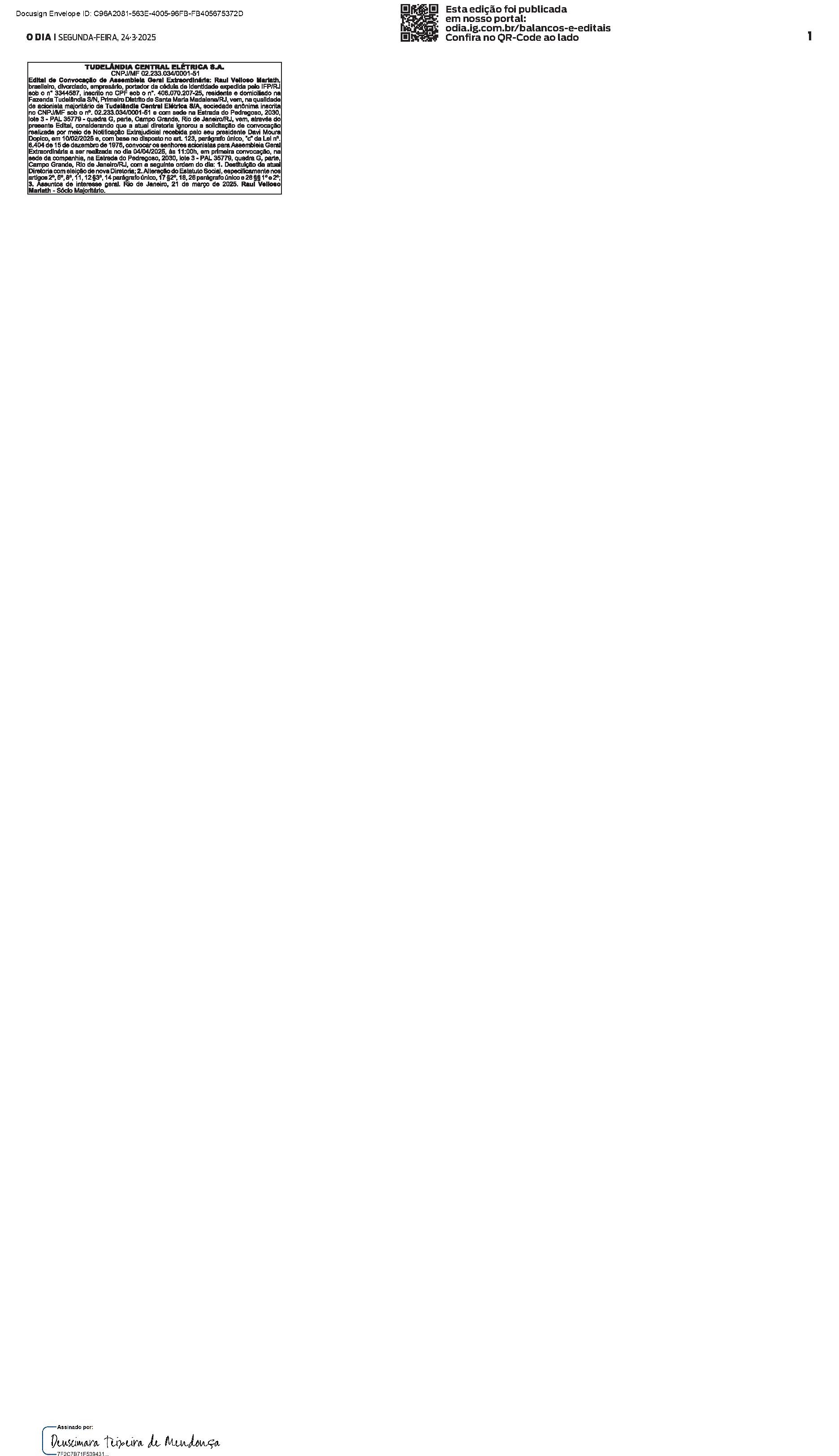 Balanços e Editais PUBLICAÇÃO CERTIFICADA 24/03/2025 PUBLICAÇÃO CERTIFICADA 24/03/2025 Publicado há 51 segundos
