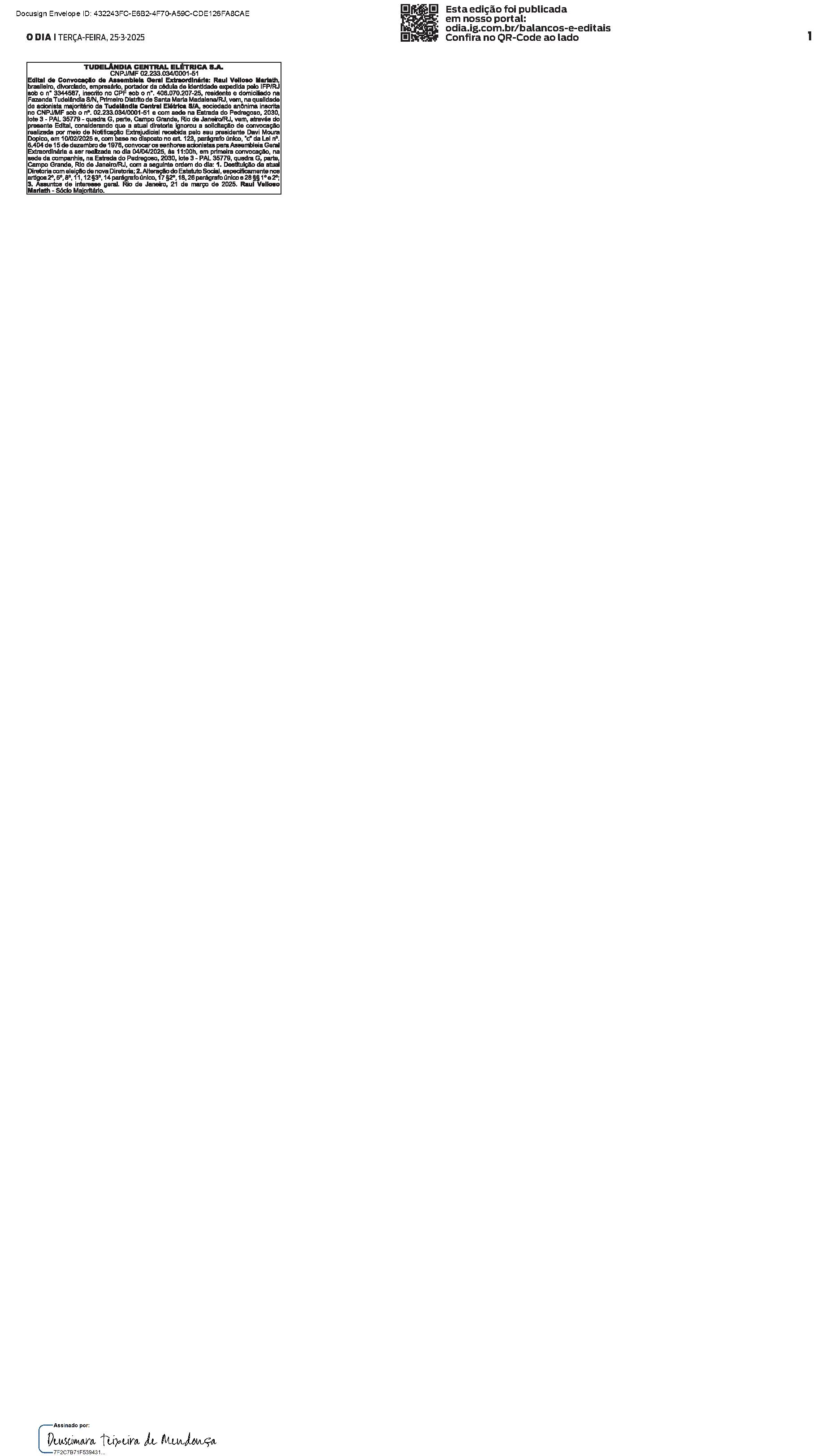 Balanços e Editais PUBLICAÇÃO CERTIFICADA 20/03/2025 PUBLICAÇÃO CERTIFICADA 20/03/2025 Publicado 20/03/2025 00:00 | Atualizado há 4 dias