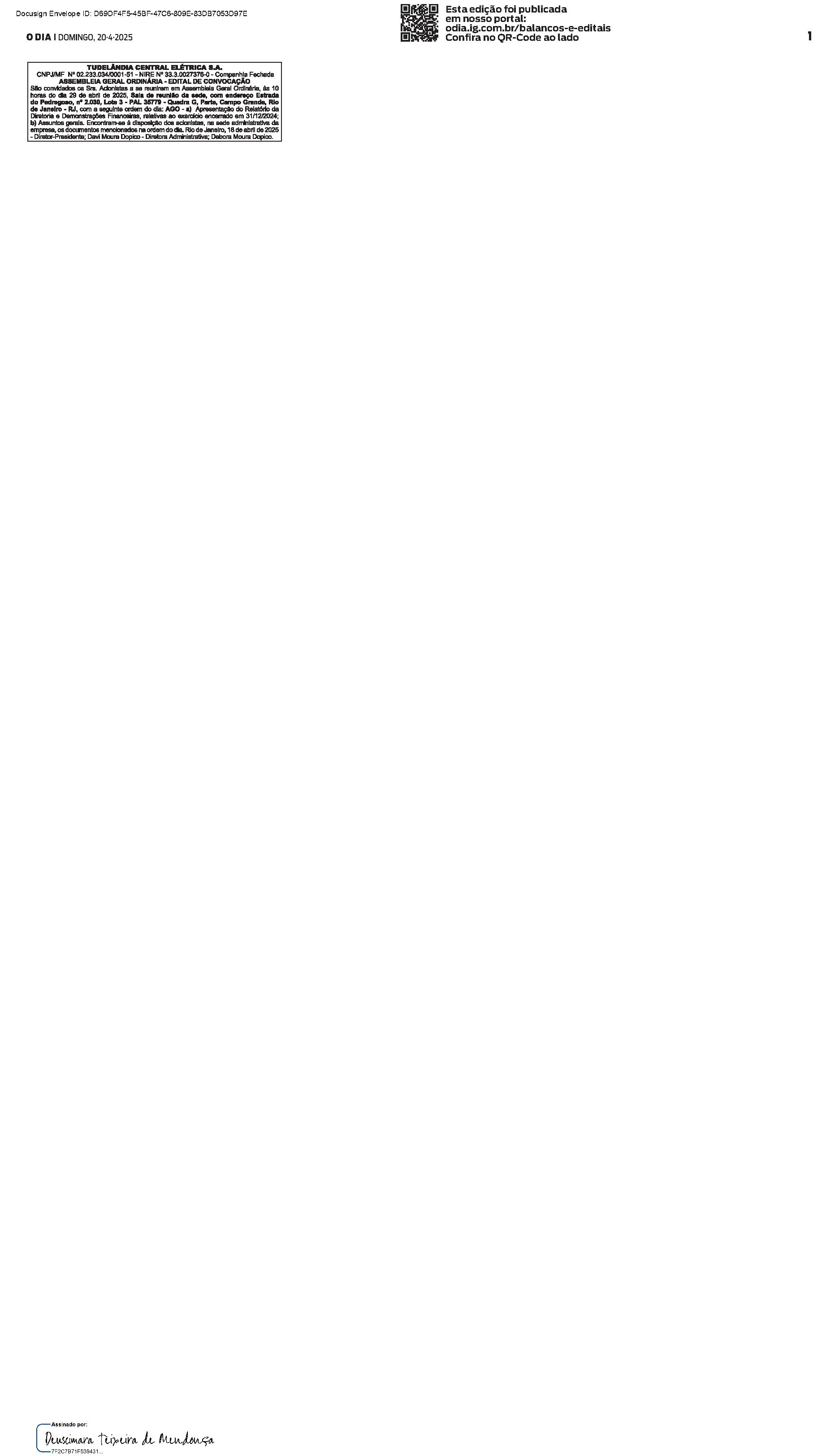 Balanços e Editais PUBLICAÇÃO CERTIFICADA 19/04/2025 PUBLICAÇÃO CERTIFICADA 19/04/2025 Publicado há 1 dia