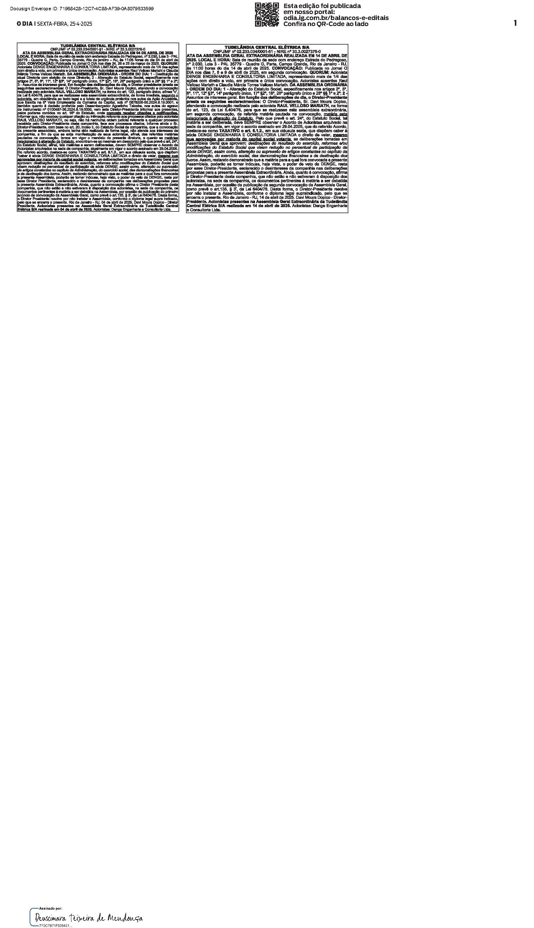 Balanços e Editais PUBLICAÇÃO CERTIFICADA 20/04/2025 PUBLICAÇÃO CERTIFICADA 20/04/2025 Publicado há 5 dias