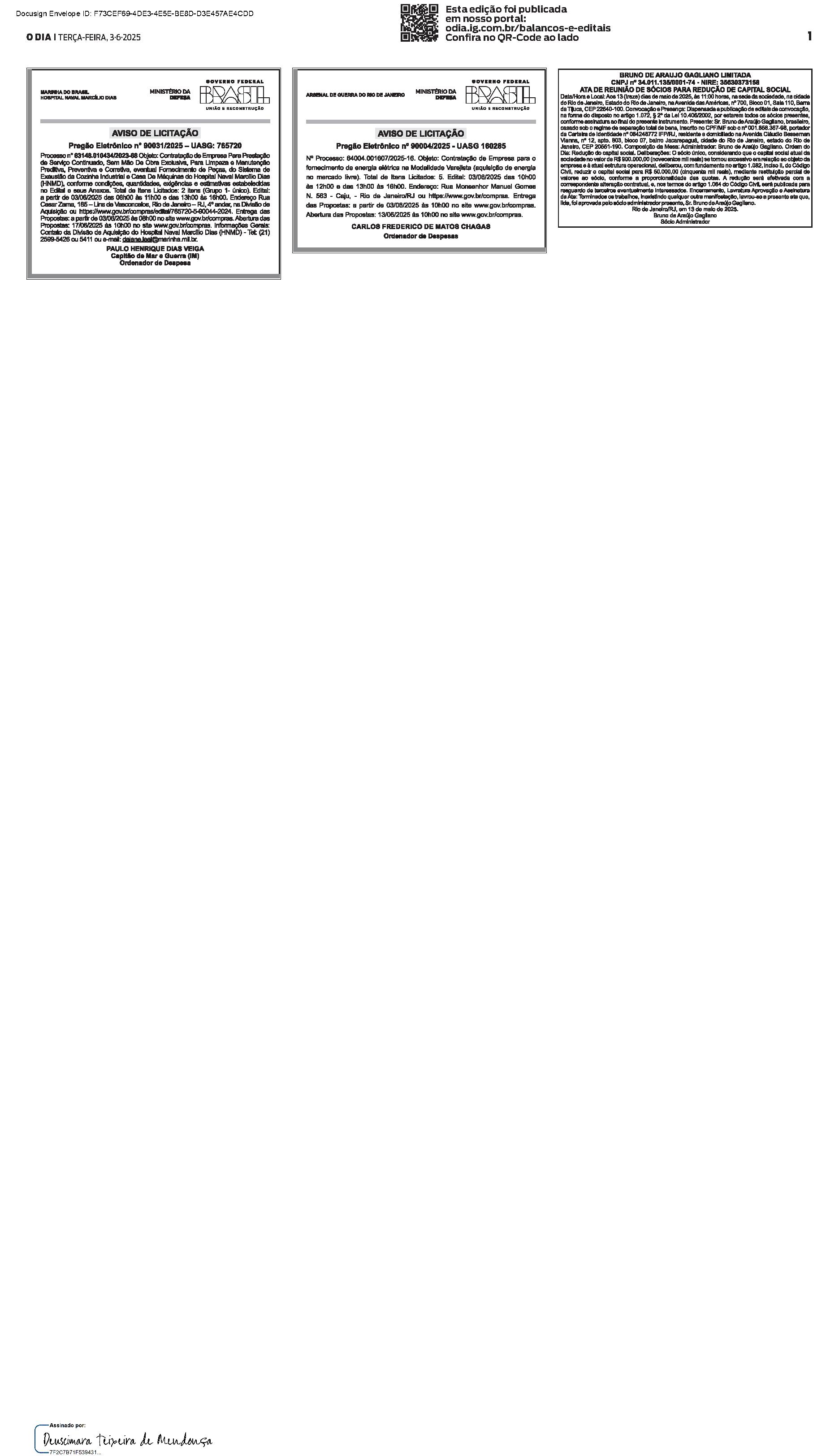 Balanços e Editais PUBLICAÇÃO CERTIFICADA 03/06/2025 PUBLICAÇÃO CERTIFICADA 03/06/2025 Publicado há 1 minuto