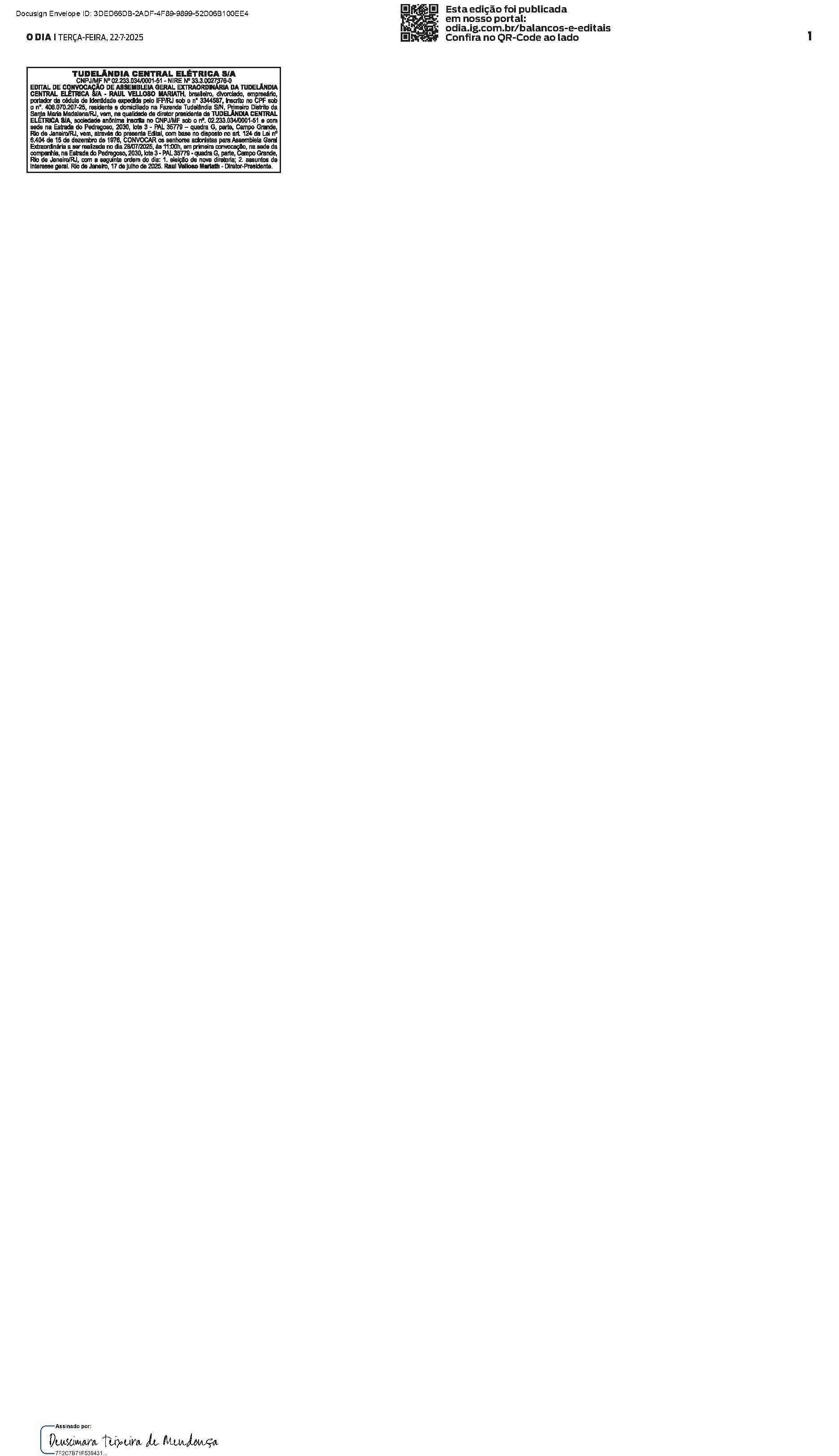 Balanços e Editais PUBLICAÇÃO CERTIFICADA 22/07/2025 PUBLICAÇÃO CERTIFICADA 22/07/2025 Publicado há 1 minuto
