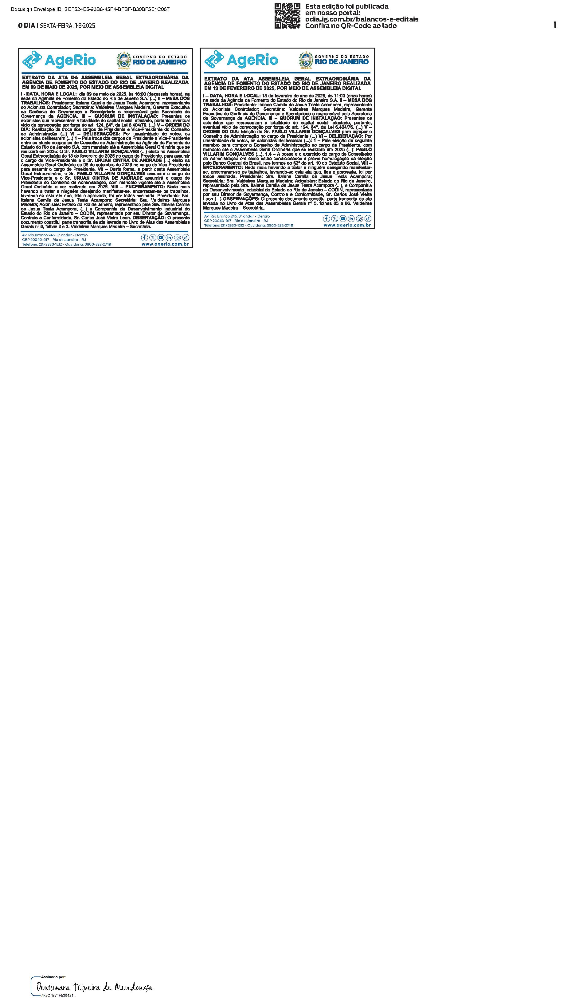 Balanços e Editais PUBLICAÇÃO CERTIFICADA 24/07/2025 PUBLICAÇÃO CERTIFICADA 24/07/2025 Publicado há 1 semana