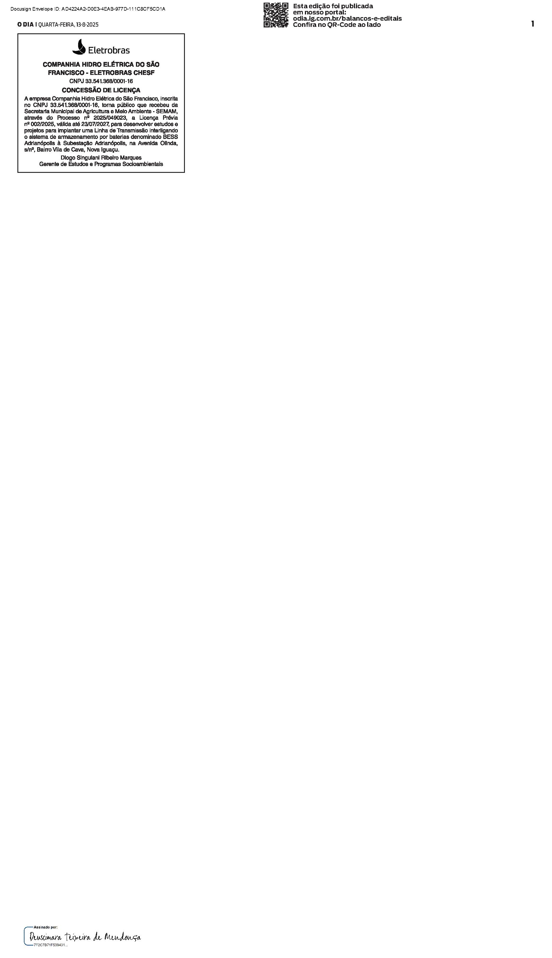 Balanços e Editais PUBLICAÇÃO CERTIFICADA 13/08/2025 PUBLICAÇÃO CERTIFICADA 13/08/2025 Publicado 13/08/2025 00:00 | Atualizado há 1 segundo