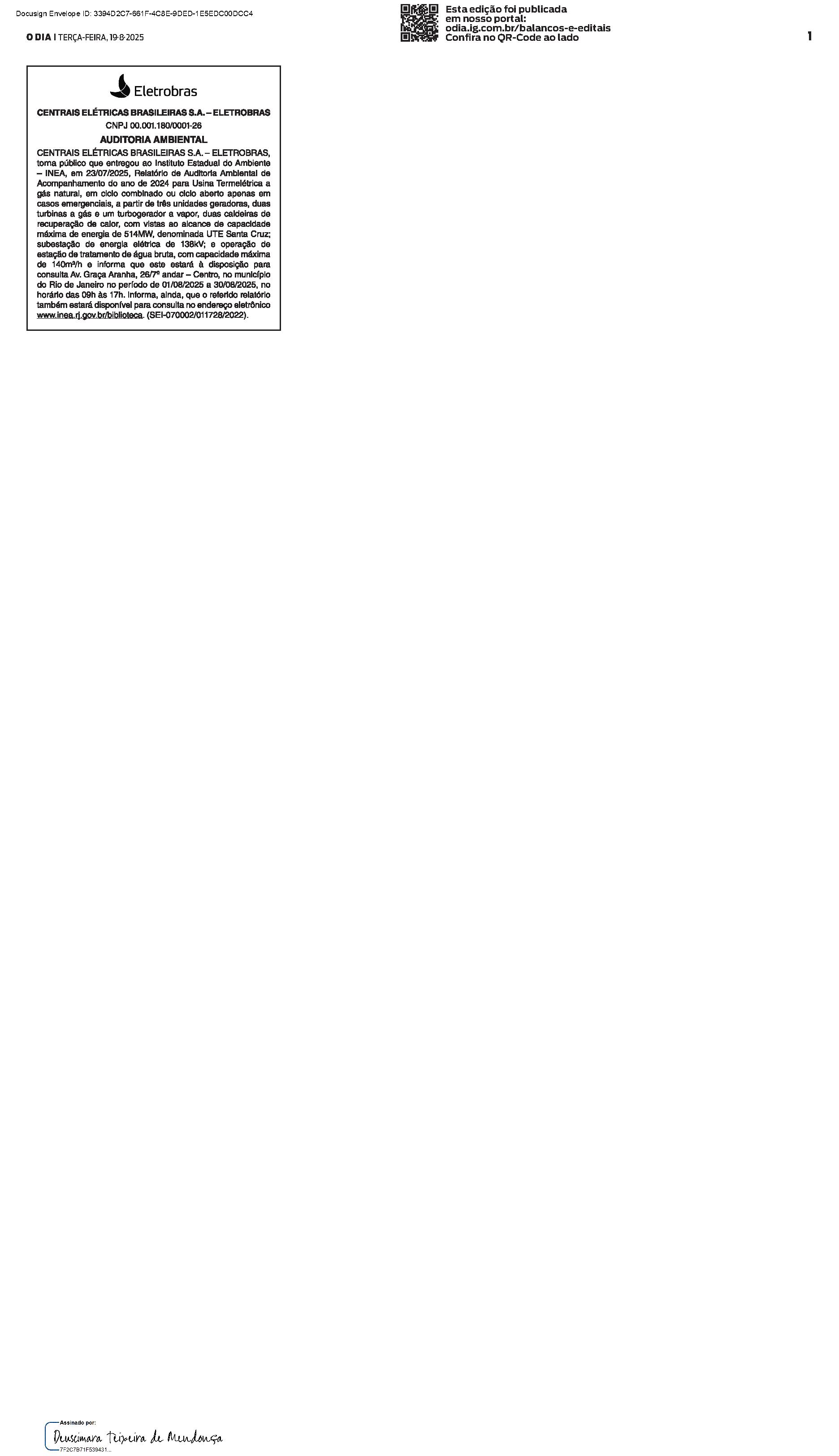 Balanços e Editais PUBLICAÇÃO CERTIFICADA 19/08/2025 PUBLICAÇÃO CERTIFICADA 19/08/2025 Publicado há 4 minutos
