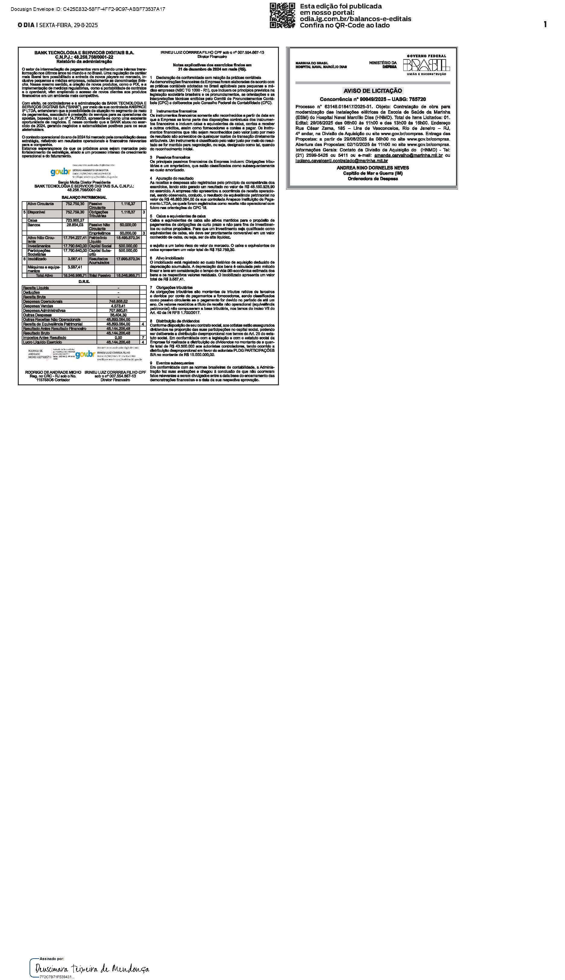 Balanços e Editais PUBLICAÇÃO CERTIFICADA 29/08/2025 PUBLICAÇÃO CERTIFICADA 29/08/2025 Publicado há 1 minuto