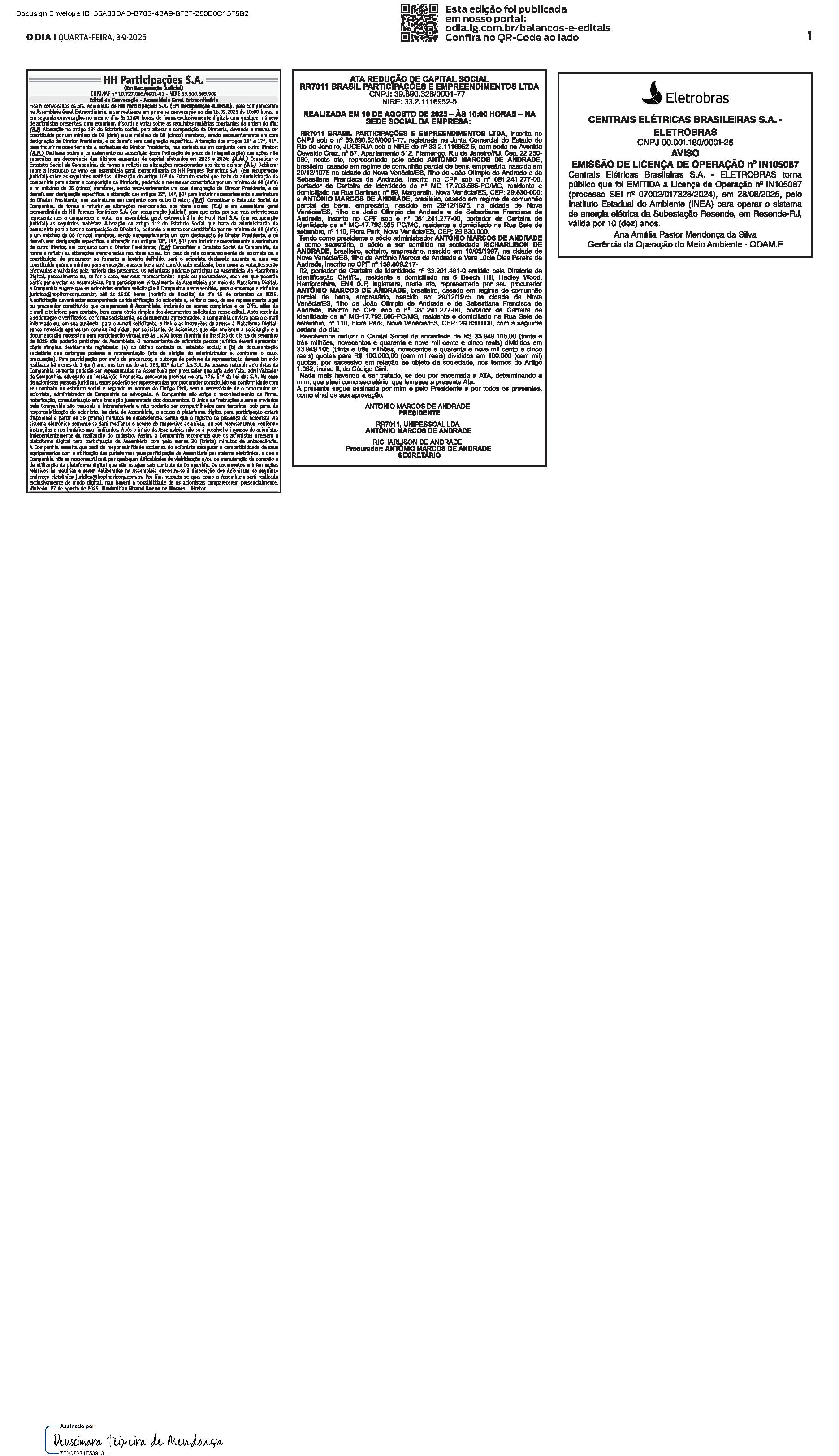 Balanços e Editais PUBLICAÇÃO CERTIFICADA 27/08/2025 PUBLICAÇÃO CERTIFICADA 27/08/2025 Publicado 27/08/2025 00:00 | Atualizado há 7 dias
