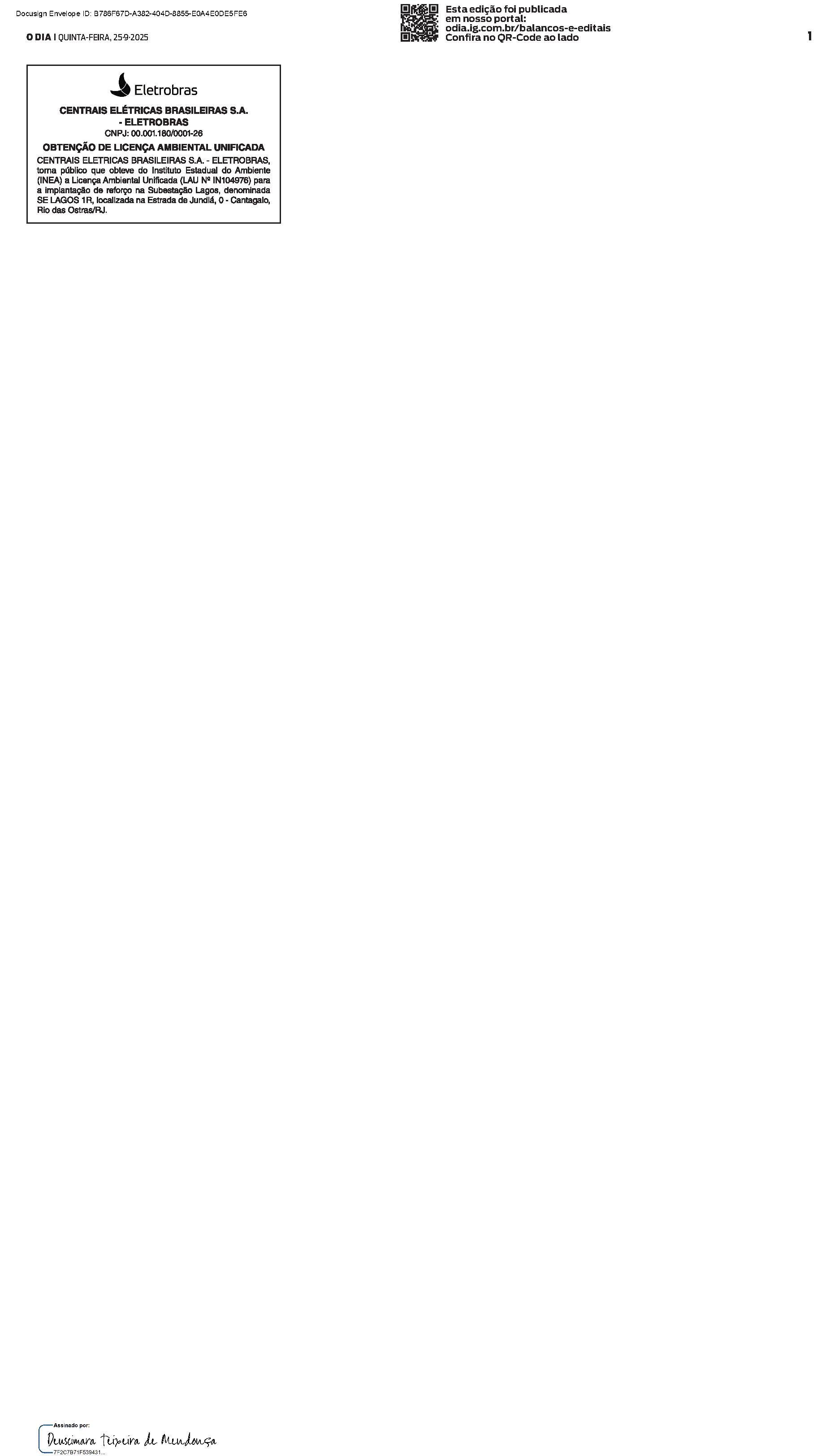 Balanços e Editais PUBLICIDADE CERTIFICADA 09/09/2025 PUBLICIDADE CERTIFICADA 09/09/2025 Publicado há 2 semanas