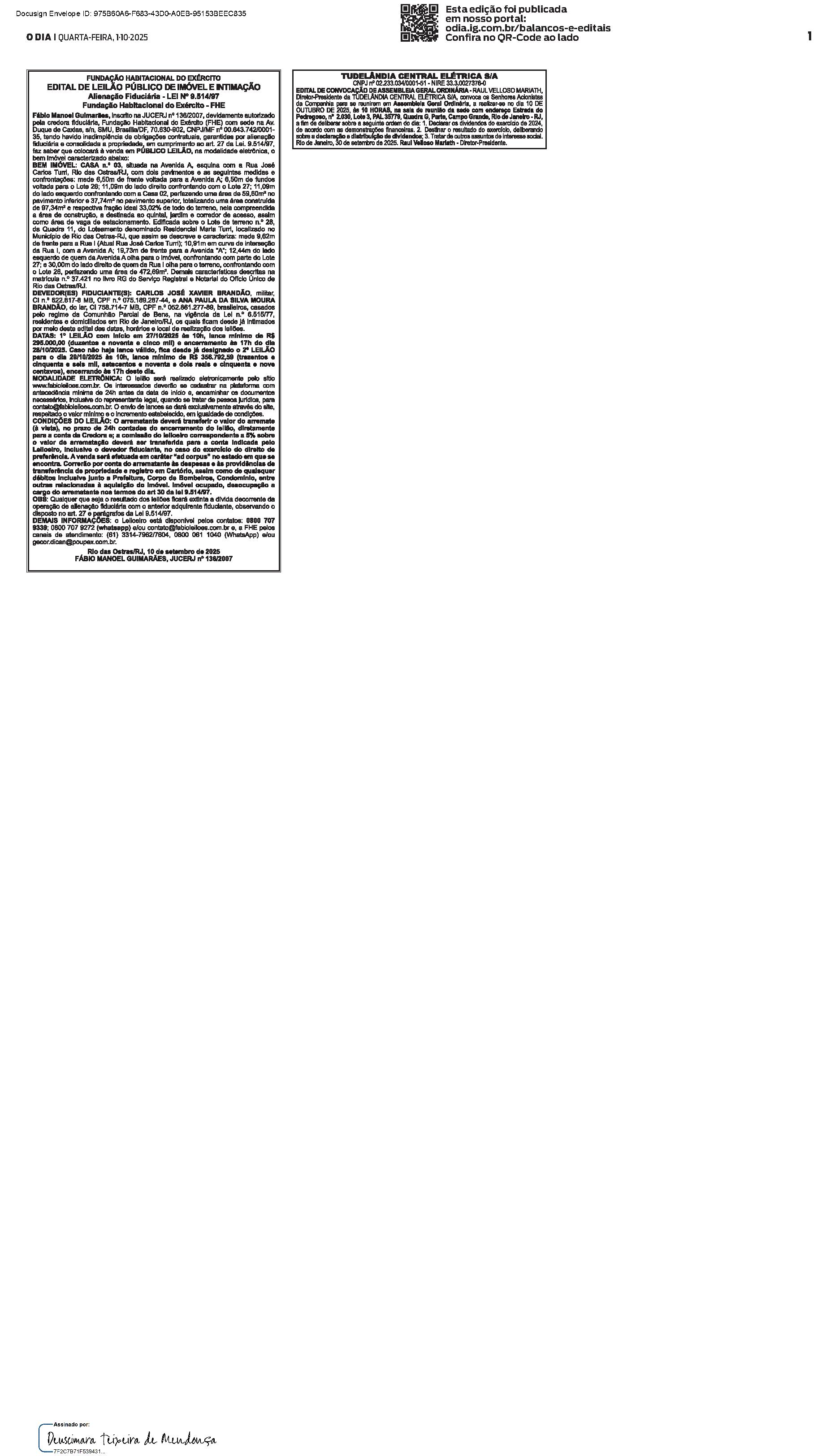 Balanços e Editais PUBLICAÇÃO CERTIFICADA 01/10/2025 PUBLICAÇÃO CERTIFICADA 01/10/2025 Publicado há 2 minutos