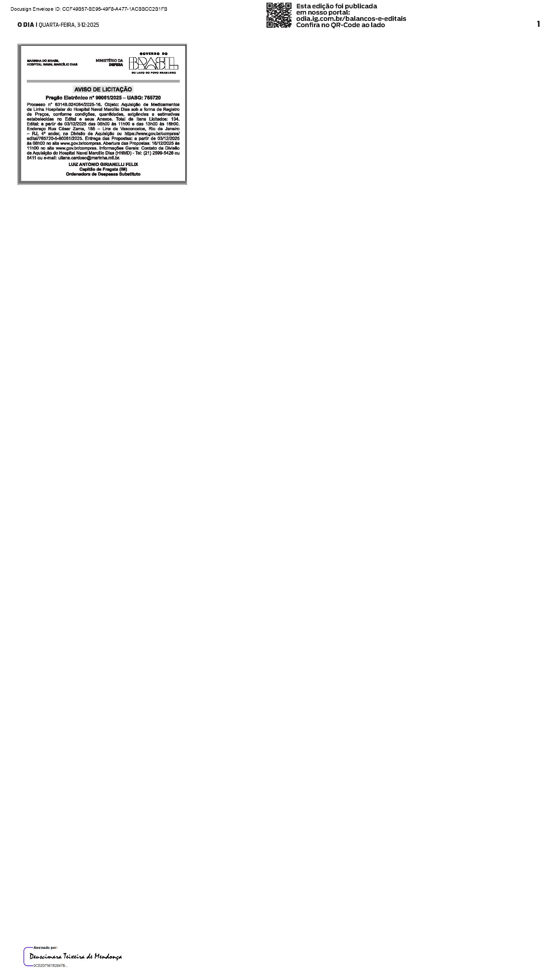 Balanços e Editais PUBLICAÇÃO CERTIFICADA 24/11/2025 PUBLICAÇÃO CERTIFICADA 24/11/2025 Publicado há 1 semana