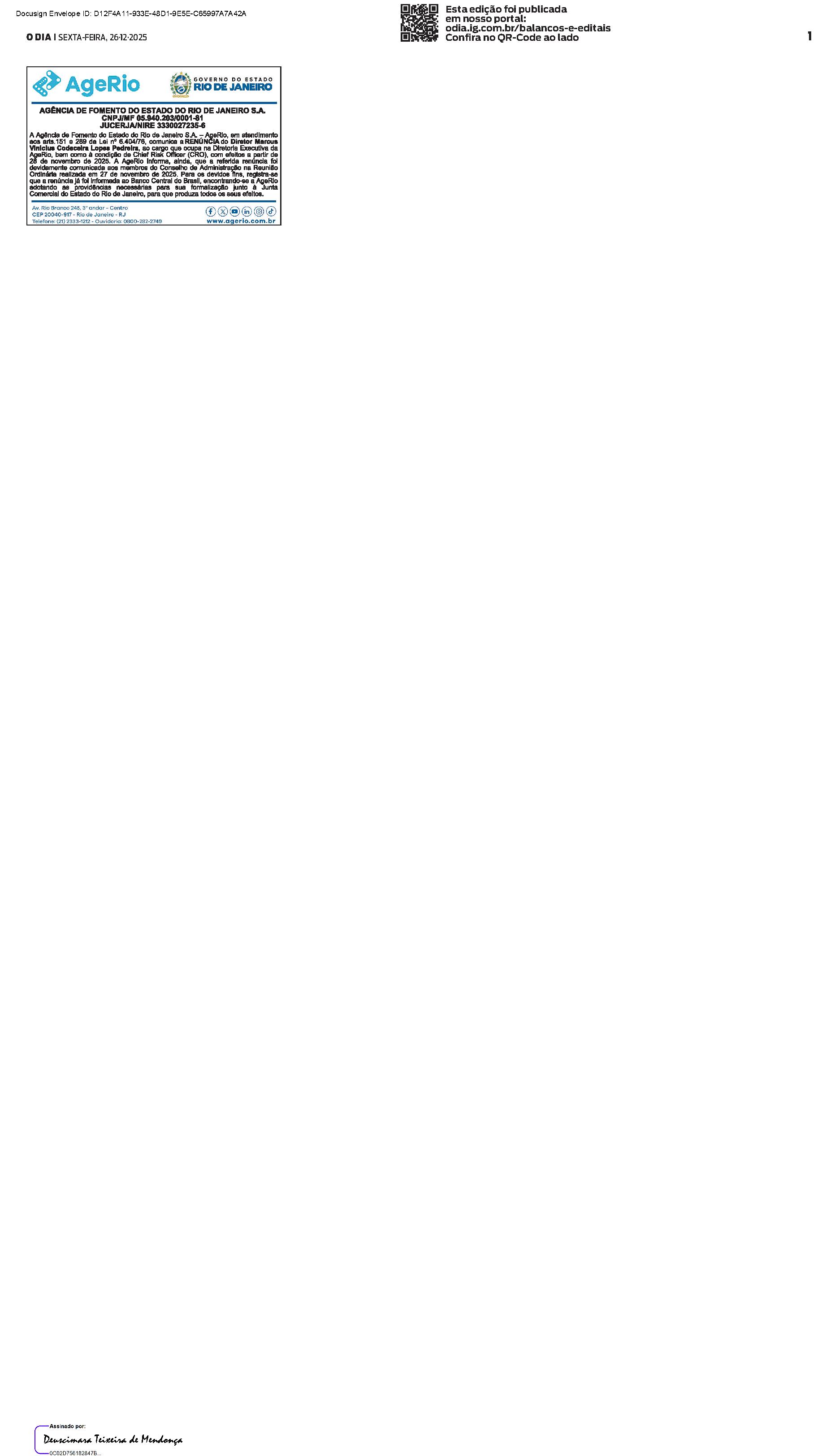 Balanços e Editais PUBLICAÇÃO CERTIFICADA 26/12/2025 PUBLICAÇÃO CERTIFICADA 26/12/2025 Publicado há 4 minutos
