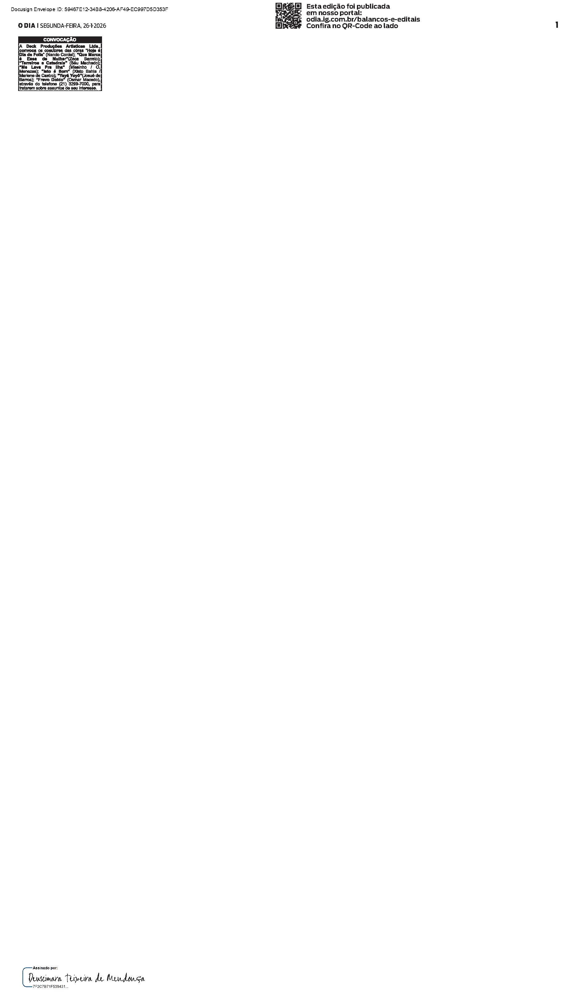 Balanços e Editais PUBLICAÇÃO CERTIFICADA 09/01/2026 PUBLICAÇÃO CERTIFICADA 09/01/2026 Publicado há 2 semanas