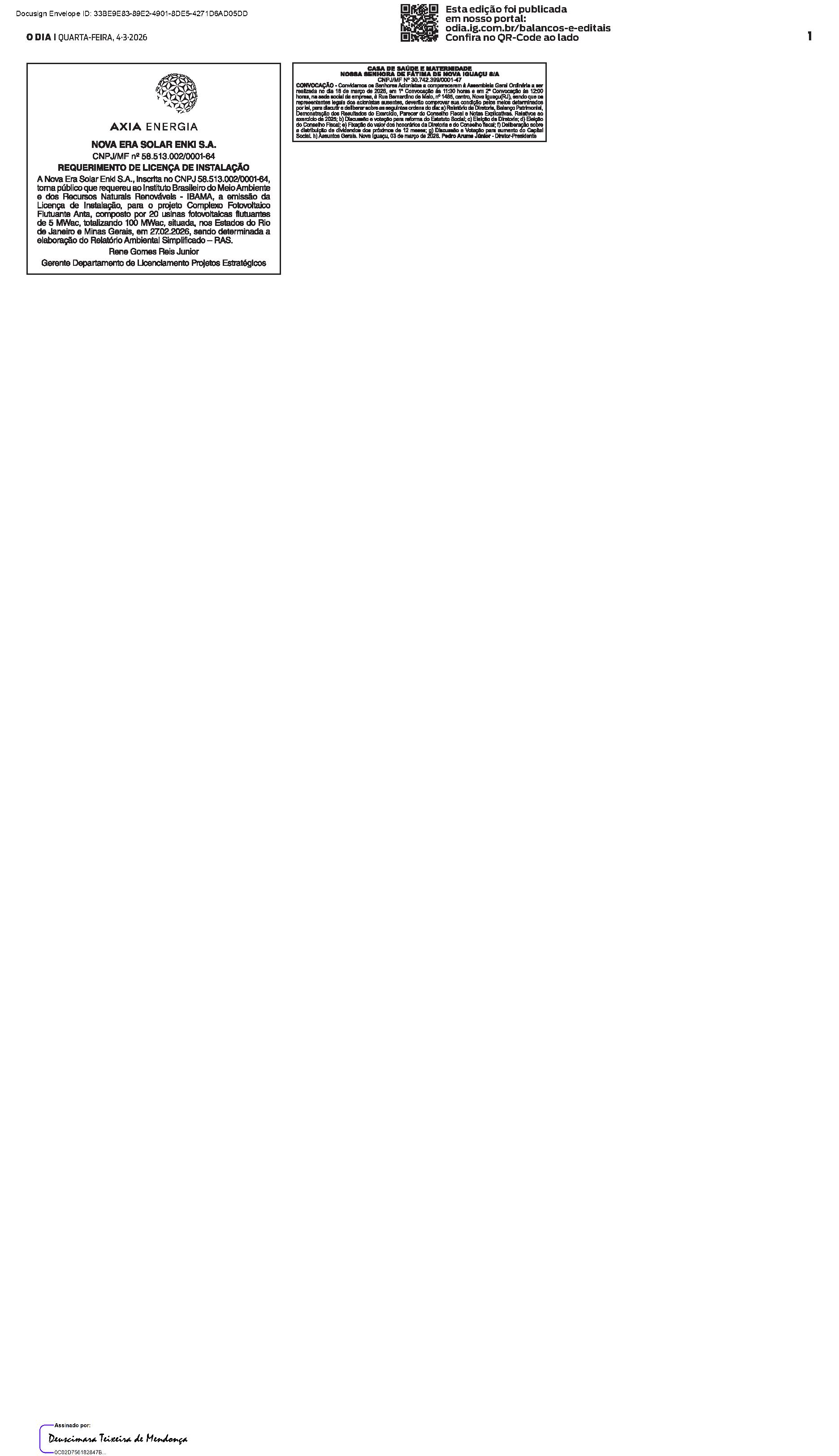 Balanços e Editais PUBLICAÇÃO CERTIFICADA 03/03/2026 PUBLICAÇÃO CERTIFICADA 03/03/2026 Publicado há 1 dia