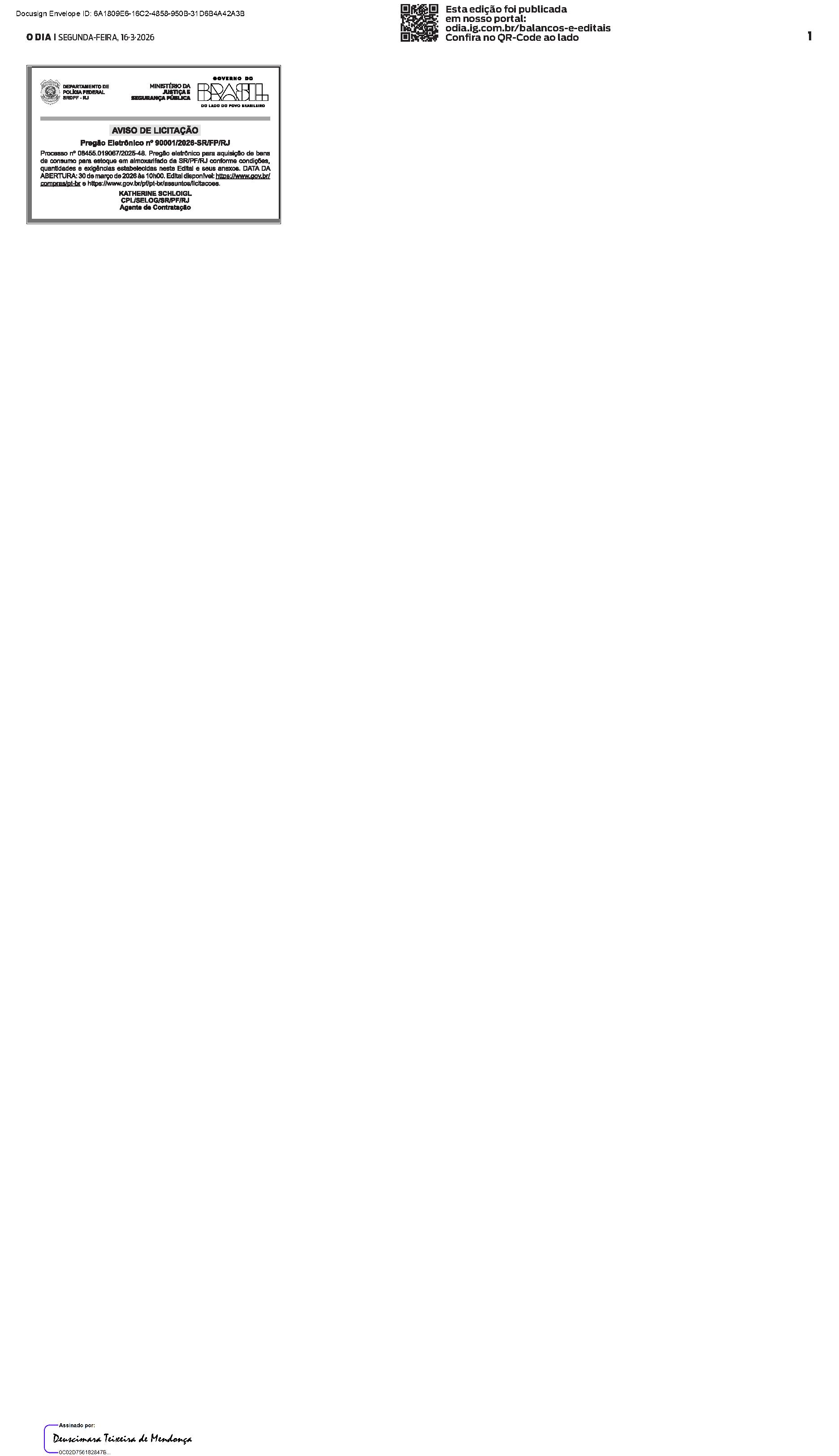 Balanços e Editais PUBLICAÇÃO CERTIFICADA 16/03/2026 PUBLICAÇÃO CERTIFICADA 16/03/2026 Publicado há 3 minutos