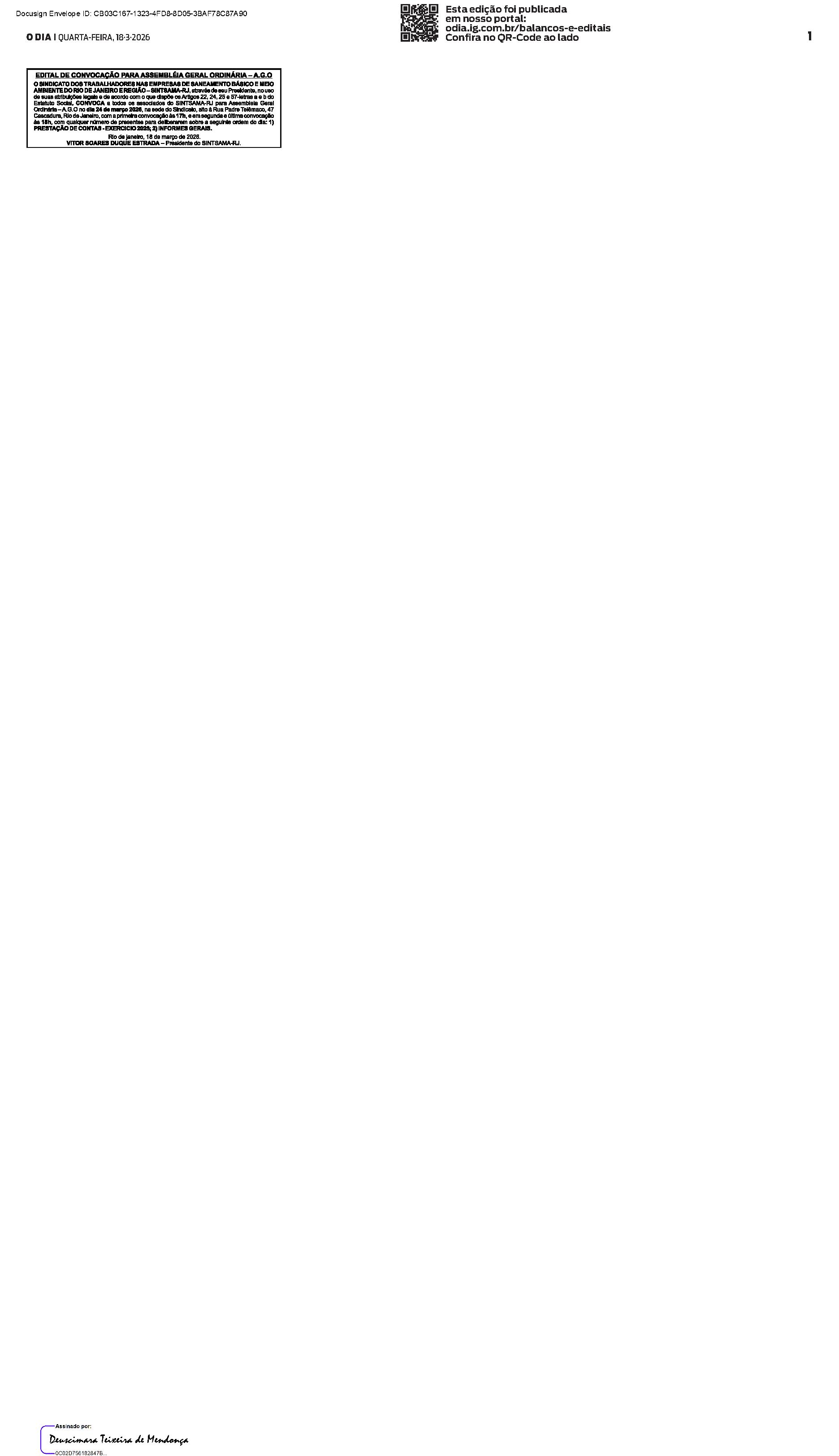 Balanços e Editais PUBLICAÇÃO CERTIFICADA 09/03/2026 PUBLICAÇÃO CERTIFICADA 09/03/2026 Publicado há 1 semana