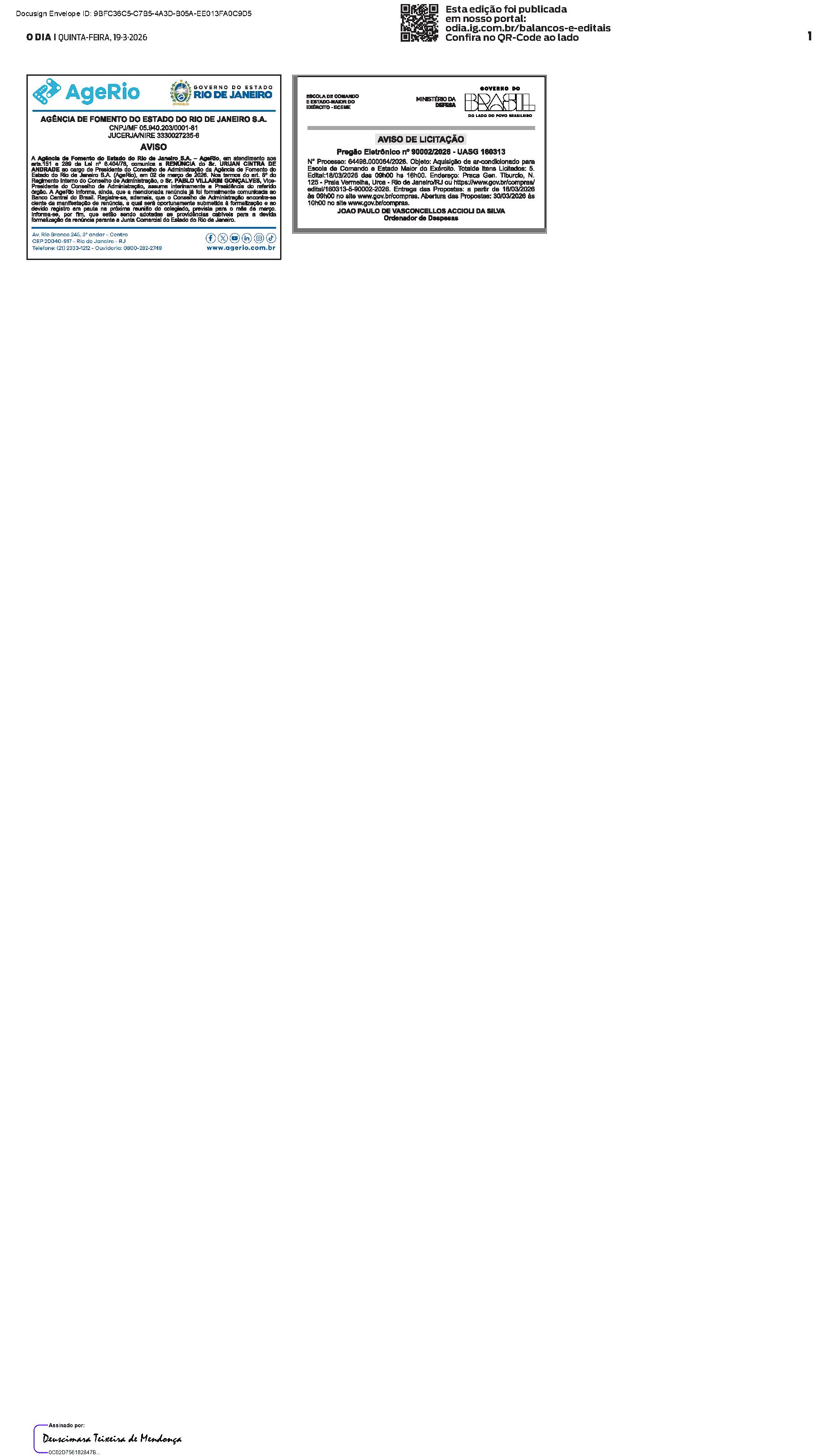 Balanços e Editais PUBLICAÇÃO CERTIFICADA 19/03/2026 PUBLICAÇÃO CERTIFICADA 19/03/2026 Publicado há 1 minuto